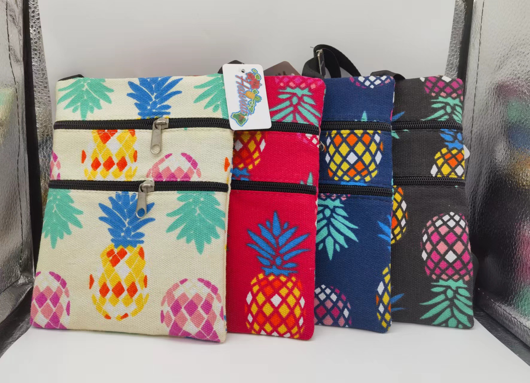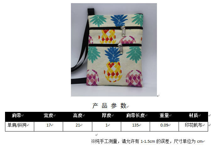 민족 파인애플 캔버스 지퍼 작은 사첼 패션 숄더 백 모든 경기 여성 포스트 맨 캐주얼 작은 가방 국경스토어 가기