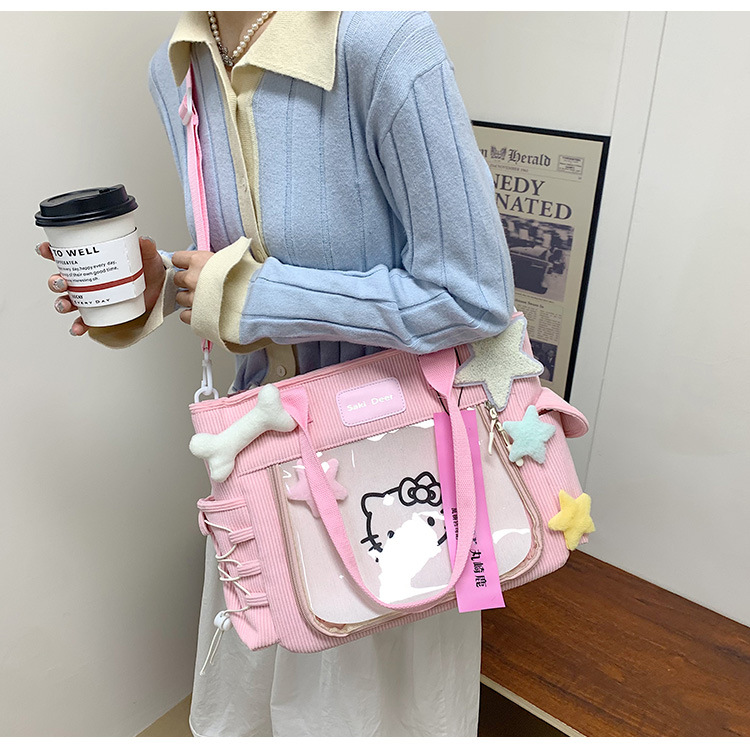 고급스러운 오리지널 학생 수제 DIY 통증 가방 대용량 통근 여행 가방 휴대용 어깨 크로스 바디 백 귀여운 소녀