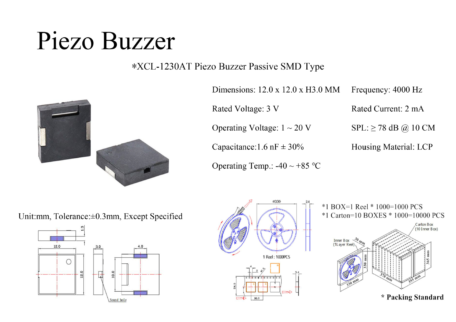 1230 SMD 부저 압전 패시브 3V 측면 발음 1-20V 고주파 얇은 사각형 SMD 음악 악기스토어 가기