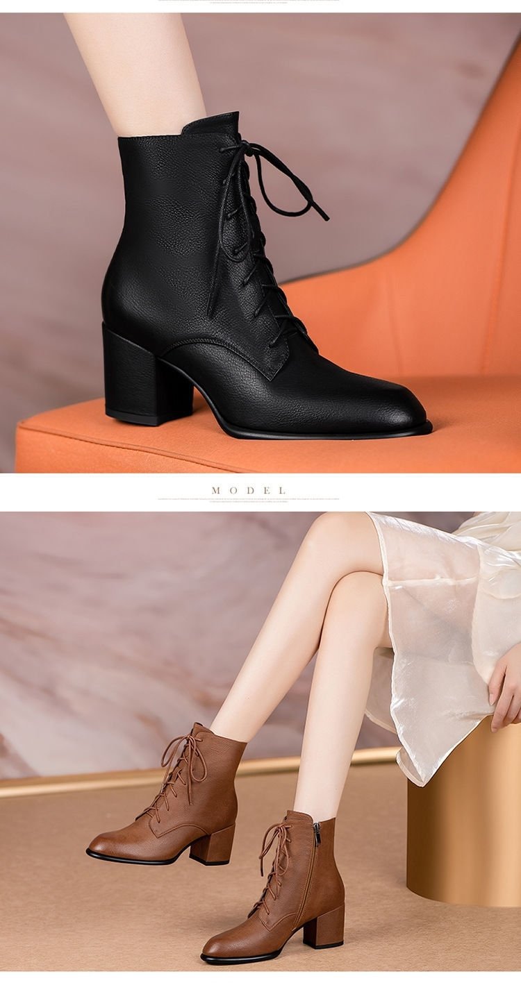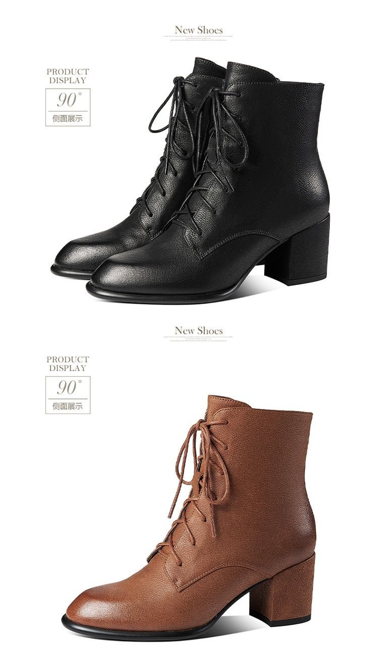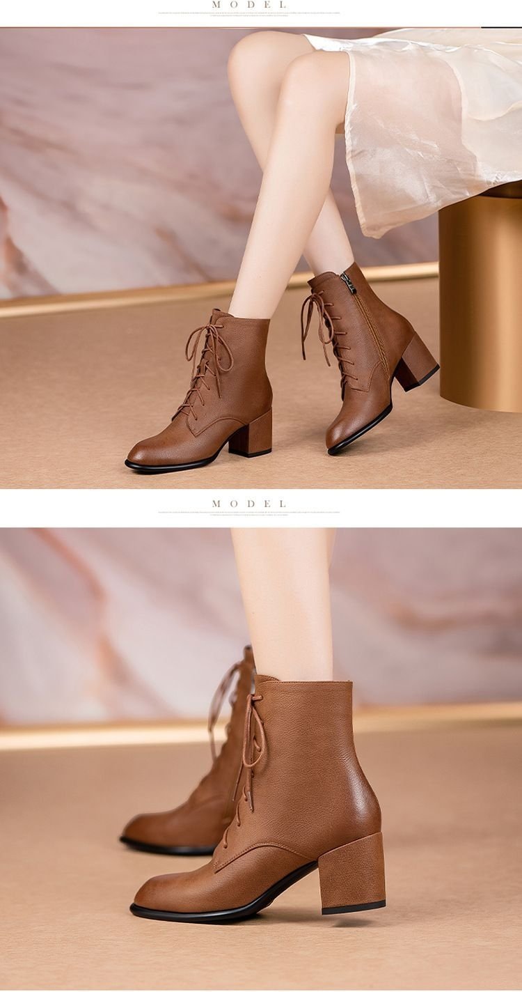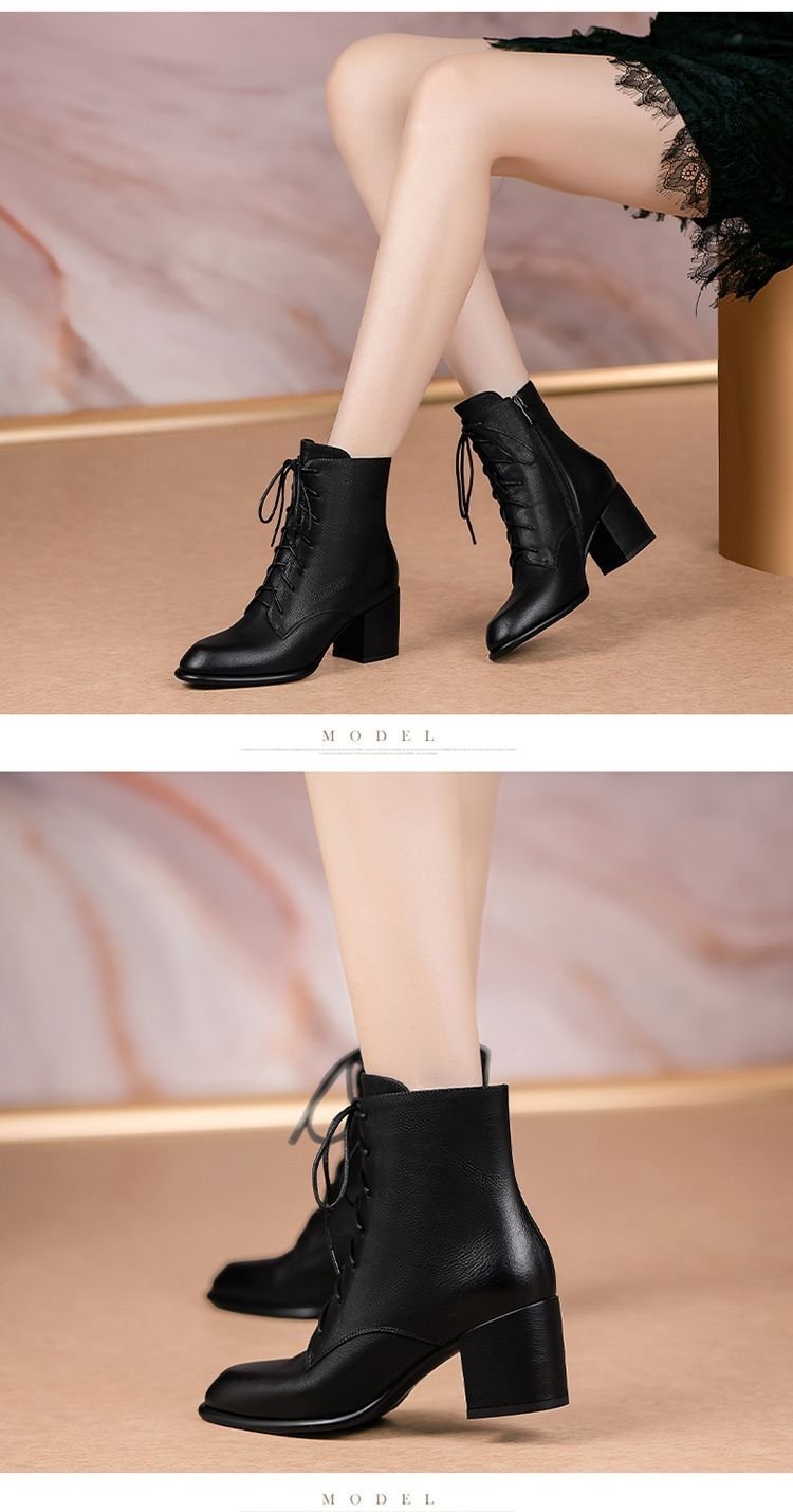 두꺼운 하이힐 포인티드 마틴 부츠 2024 가을과 겨울 새로운 영국 스타일 레이스업 짧은 부츠 기모 따뜻한 코튼 신발 가죽 부츠스토어 가기