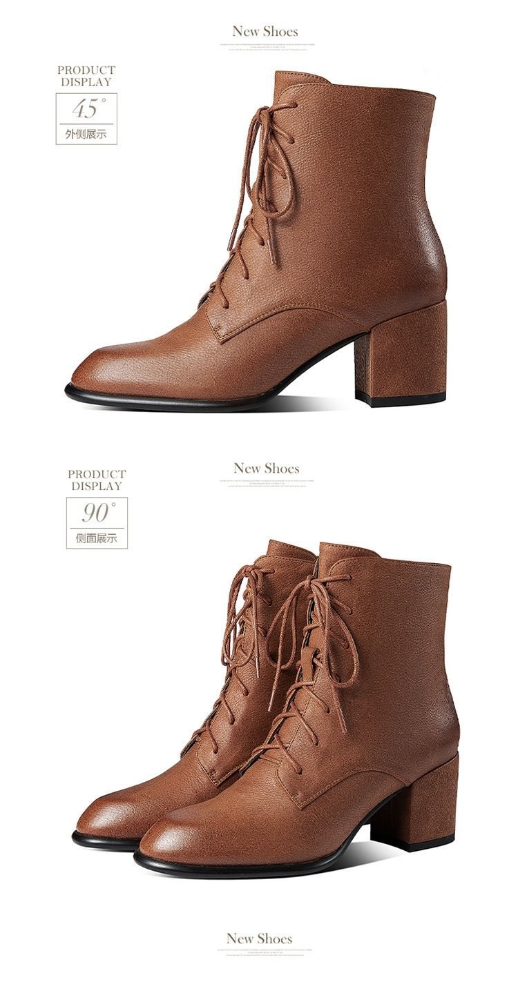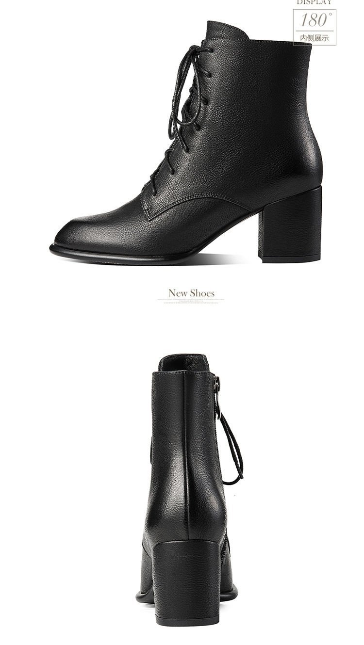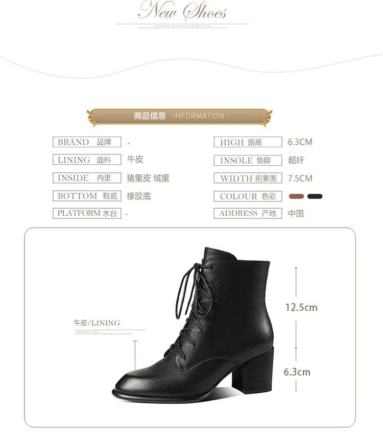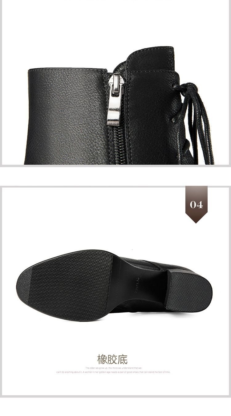 두꺼운 하이힐 포인티드 마틴 부츠 2024 가을과 겨울 새로운 영국 스타일 레이스업 짧은 부츠 기모 따뜻한 코튼 신발 가죽 부츠스토어 가기