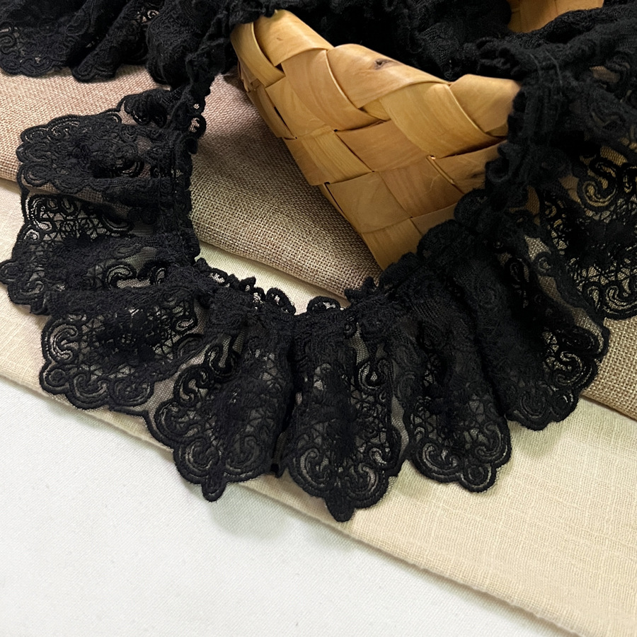 유럽식 메쉬 자수 커튼 스커트 큰 꽃 주름 작은 샤넬 스타일 장식 의류 DIY 액세서리 너비 8.5cm