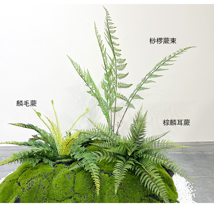 가짜 모리 안뜰 발코니 공장 벽 꽃 그루브 장식 로우 페르시아 고사리 고사리 지느러미 잎 번들 분재 풍경 시뮬레이션스토어 가기