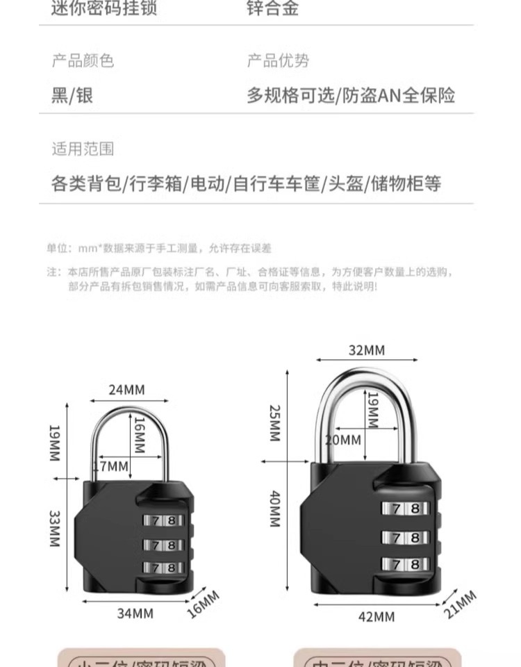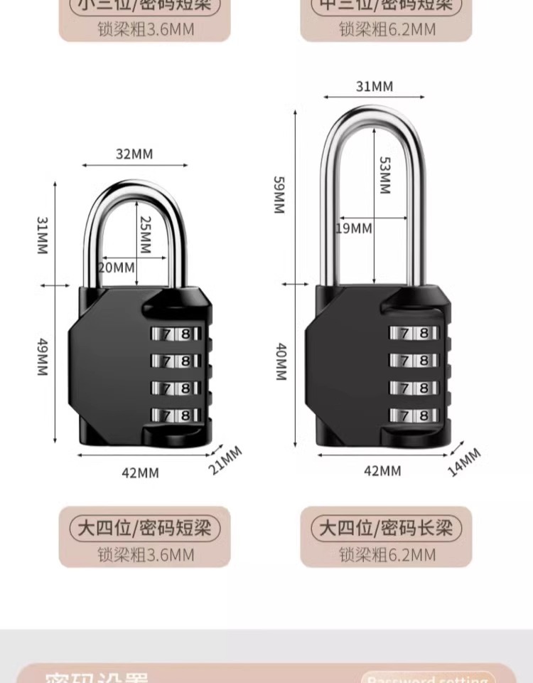 비밀번호 자물쇠 방수 녹 방지 가방 잠금 잠금 장치 학교 가방 자전거 프레임 헬멧 체육관 잠금 헤드