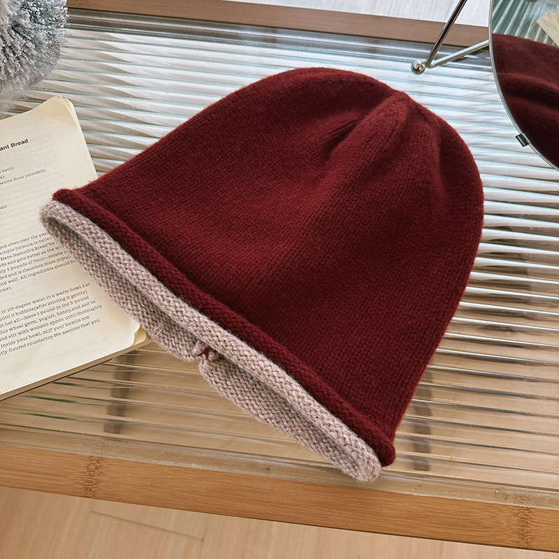100 양모 니트 모자 가을과 겨울 얼굴 작은 컬 힙 모자 따뜻한 웨스턴 이어 그레이 콜드 햇 여성용 울 모자스토어 가기