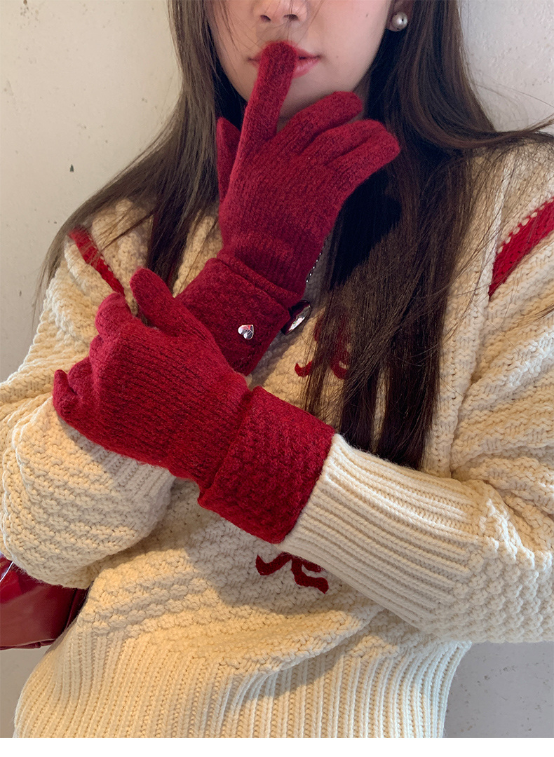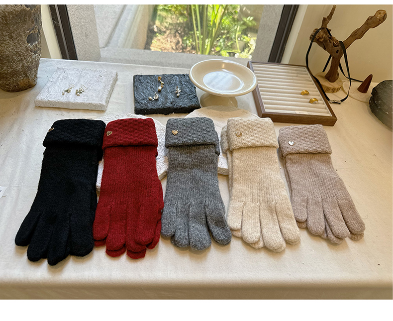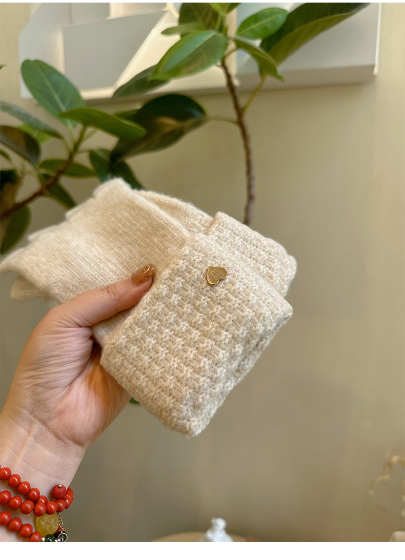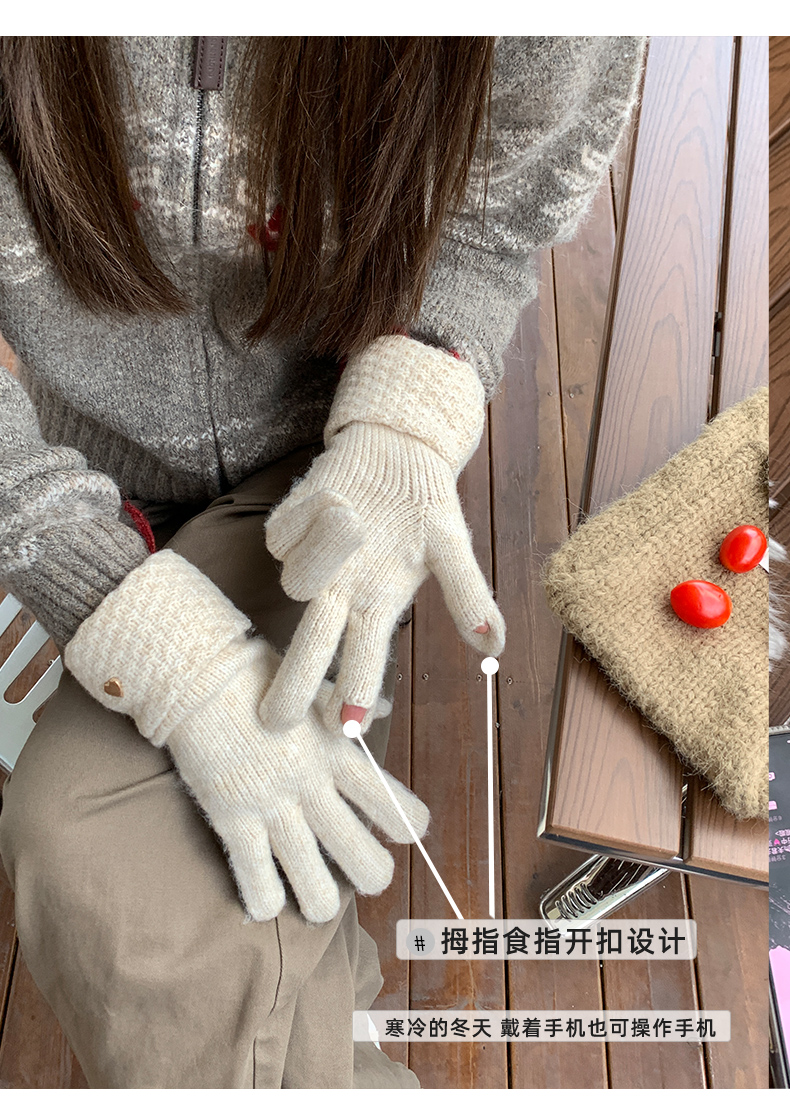 샤넬 스타일 플립 울 블렌드 니트 따뜻한 장갑 양모 가을 겨울 슬리밍 터치 스크린 여성을위한 안티 콜드 장갑