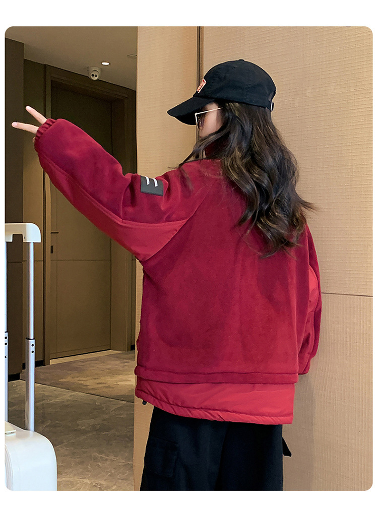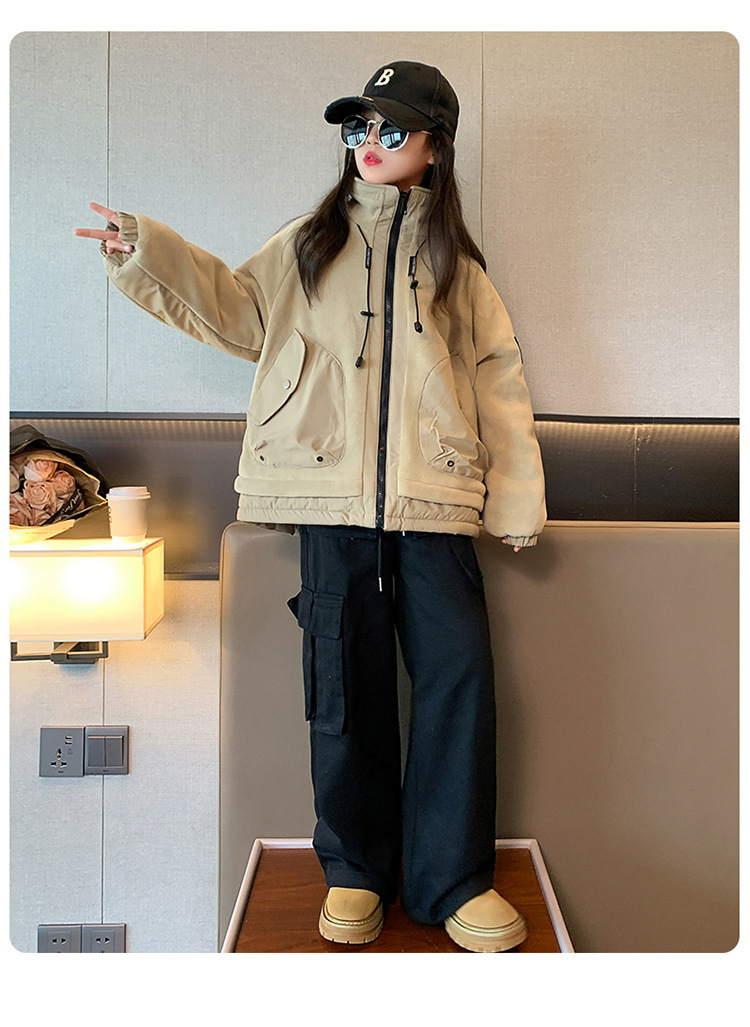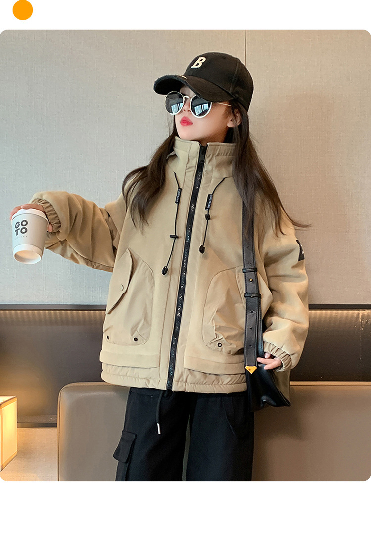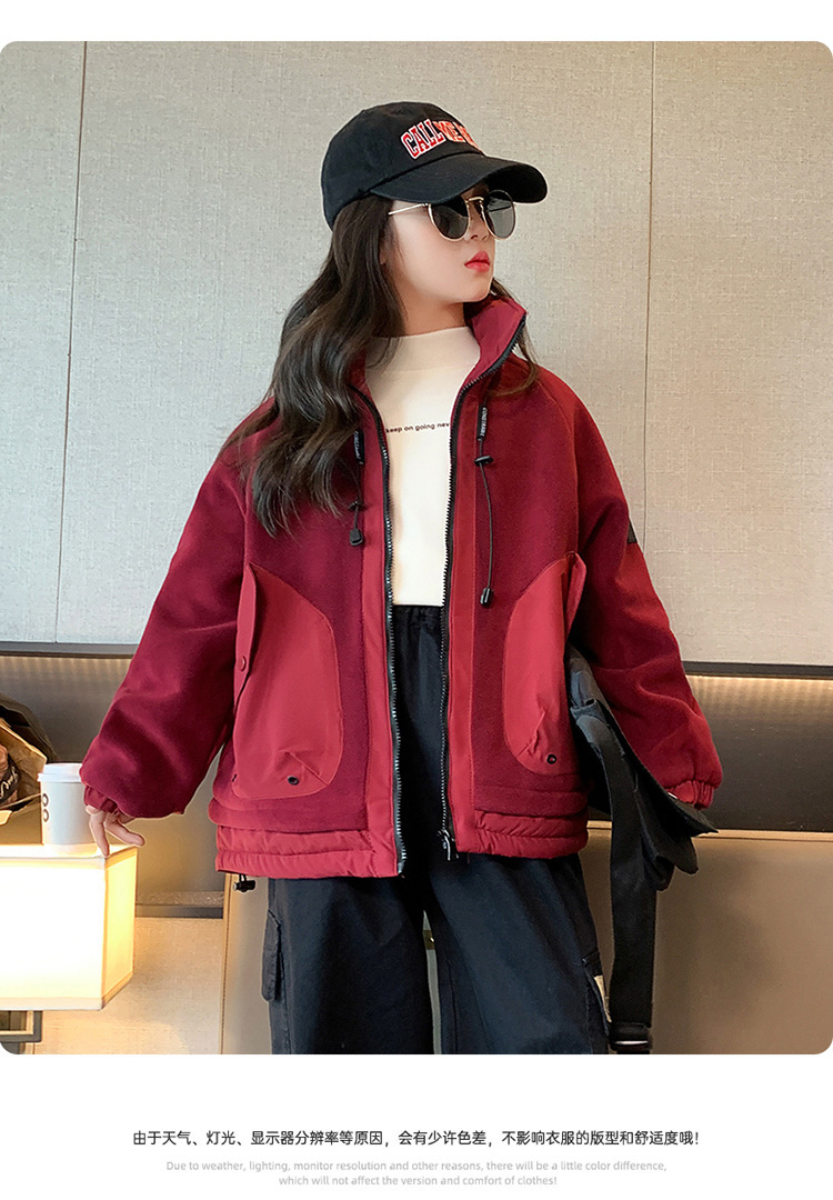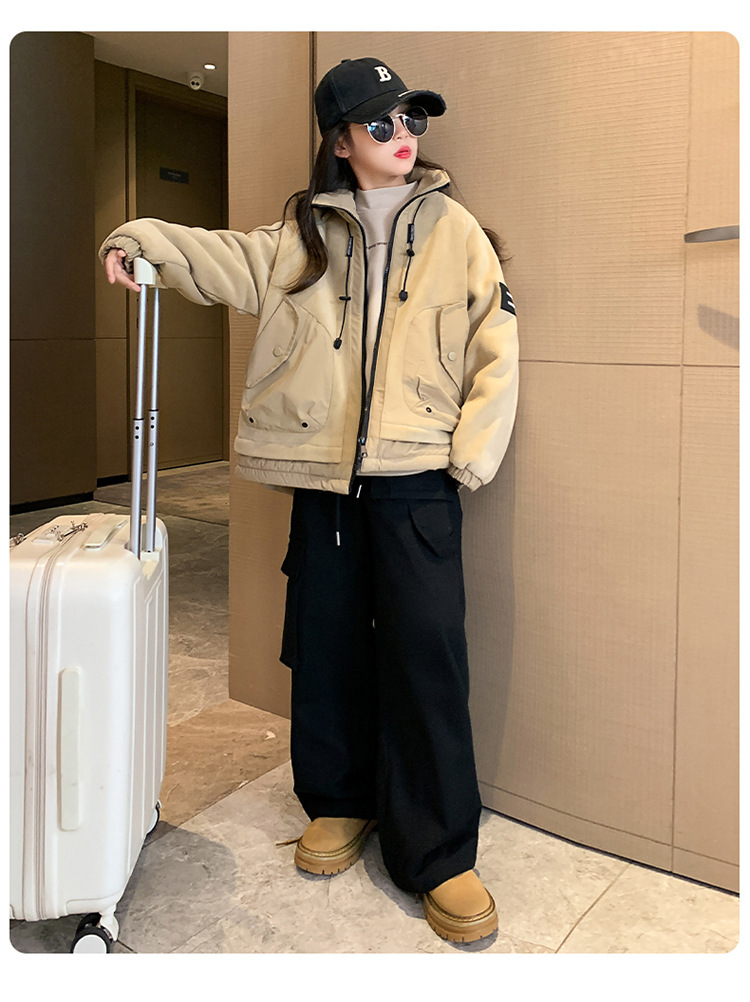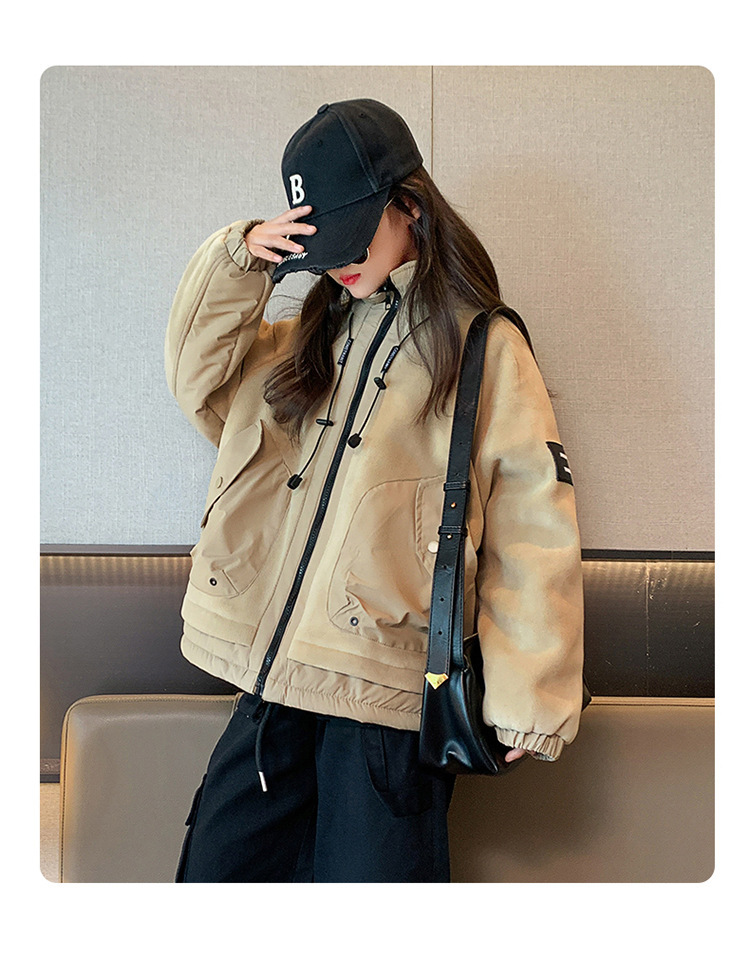 툴링 소녀의 겨울 새로운 레트로 홍콩 스타일 올 매치 기모 두꺼운 지퍼 코튼 패딩 재킷 코트