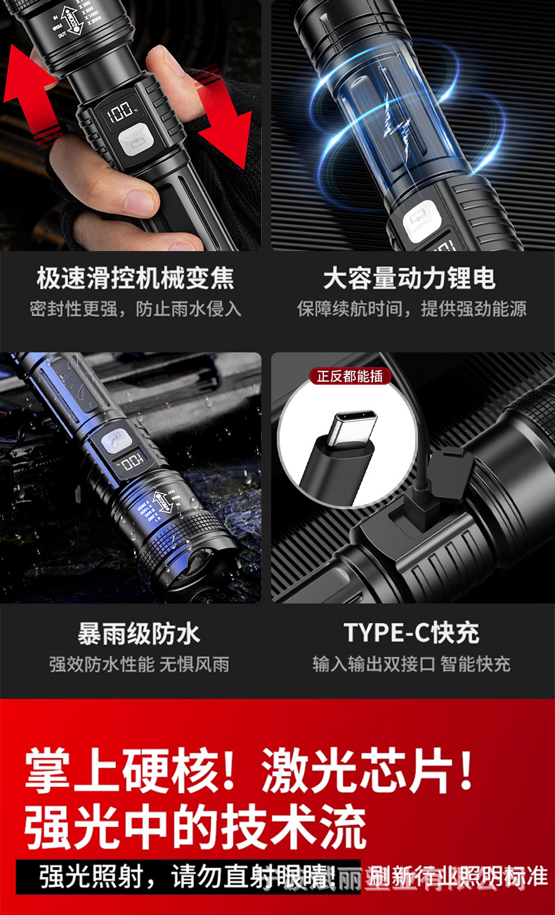 손전등 강한 빛 충전식 장거리 빛 슈퍼 밝은 야외 비상 조명 레이저 빛 내구성 긴 led 빛