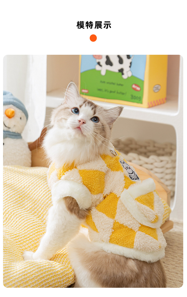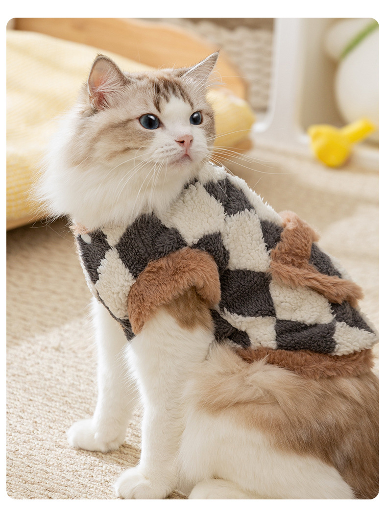 가을과 겨울 고양이 옷 체크 보드 포켓 티 컵 조끼 두꺼운 따뜻한 겨울 새끼 고양이 강아지 애완 동물 옷