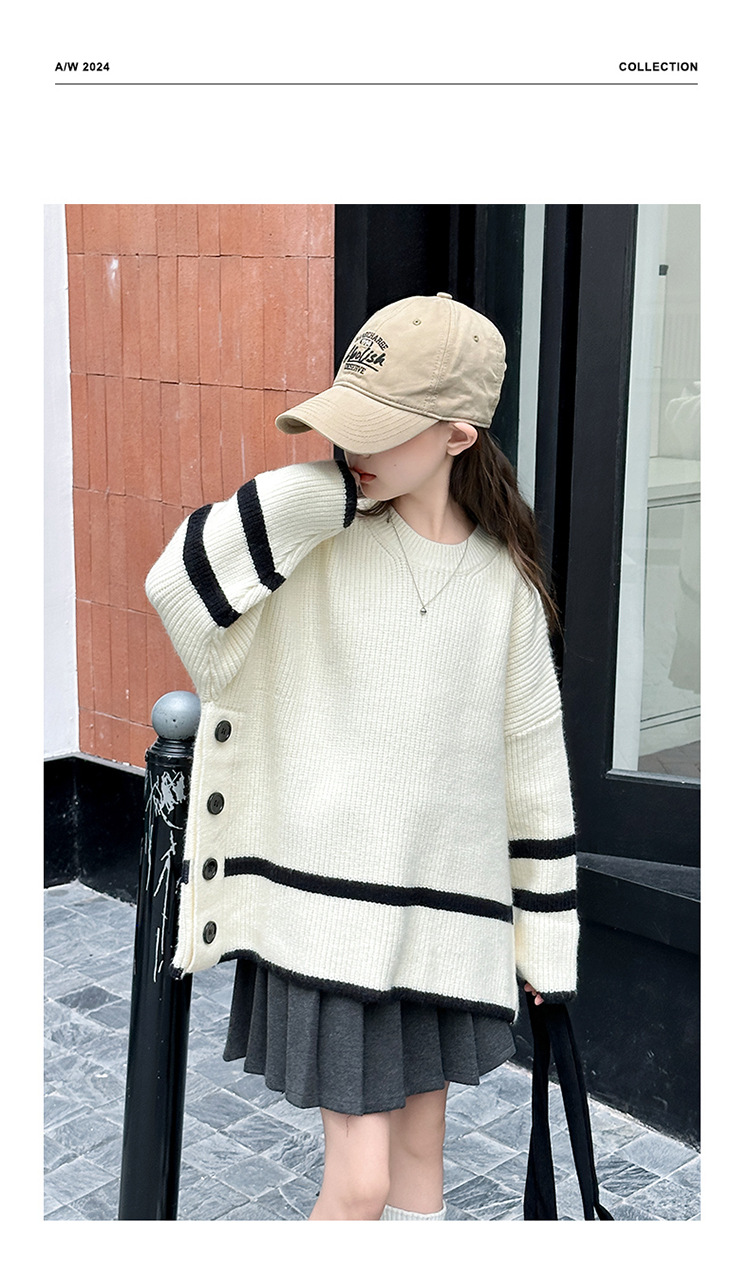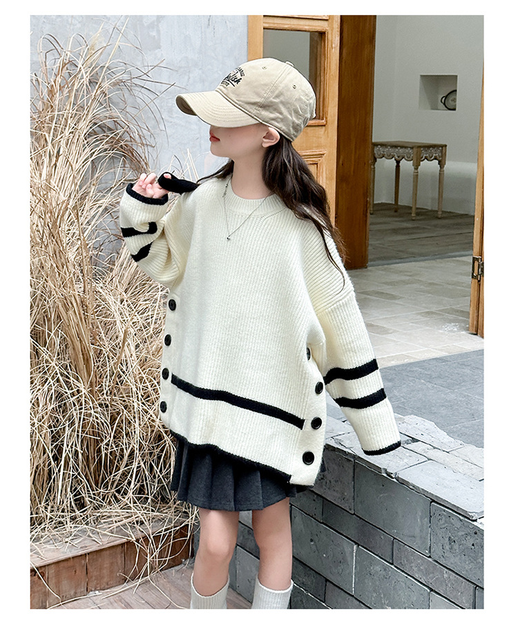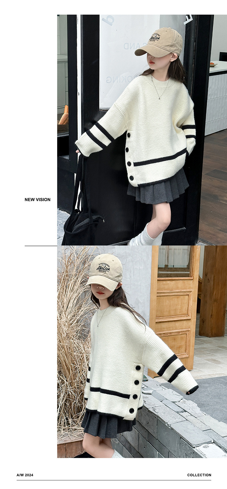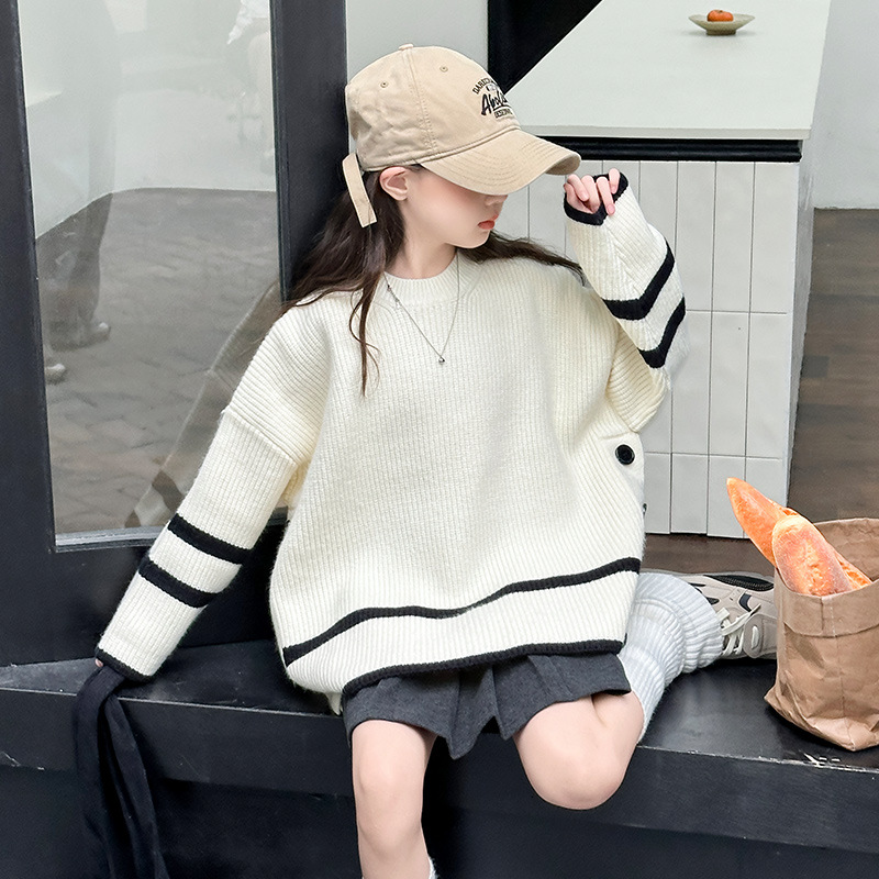 소녀의 풀오버 스웨터 느슨한 가을과 겨울 새로운 스타일 소녀의 세련된 탑 세련된 바지 스웨터 트렌디스토어 가기