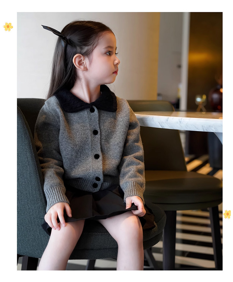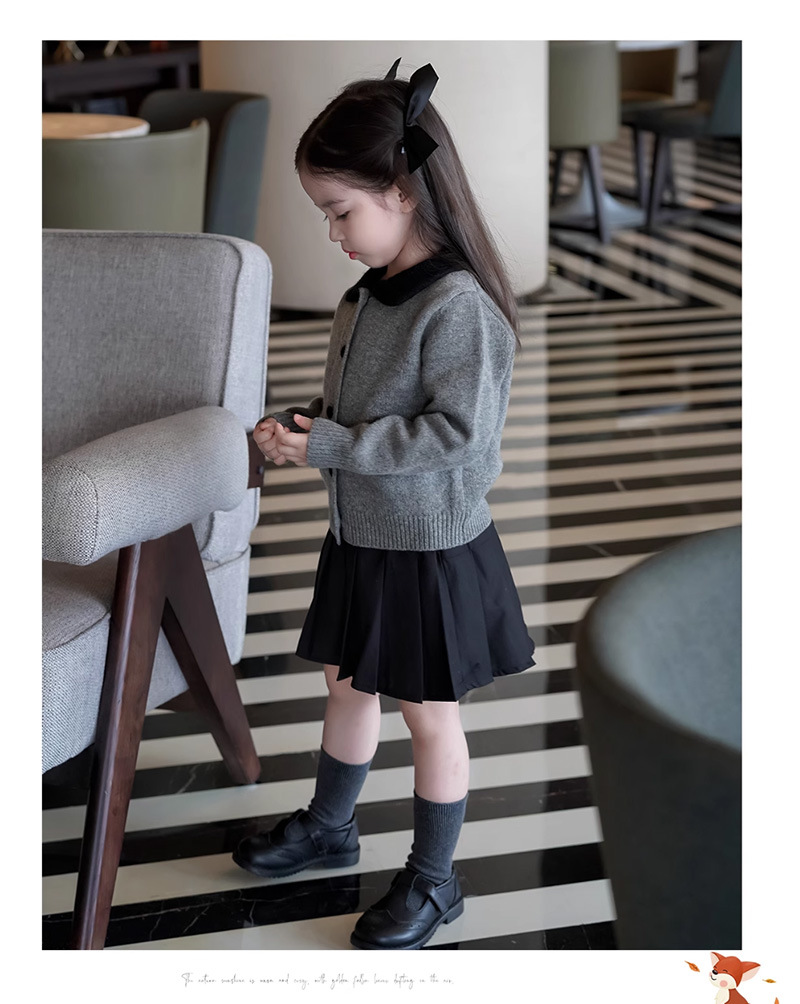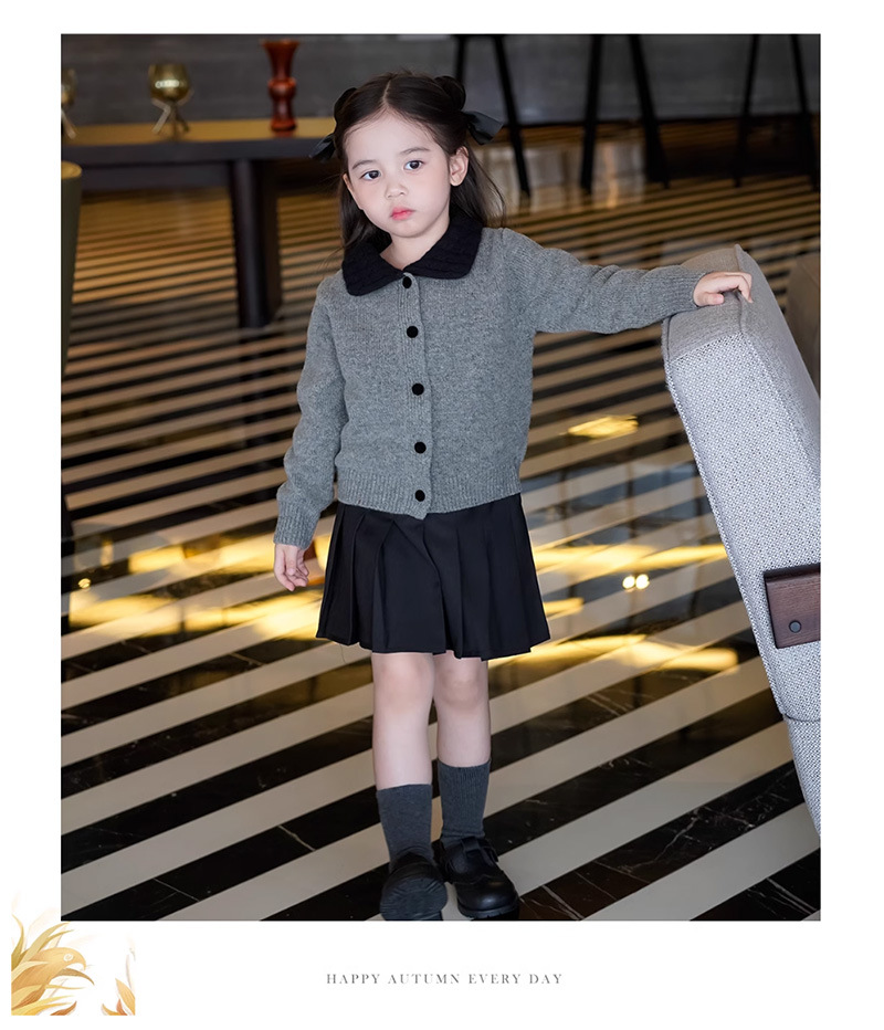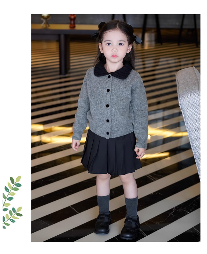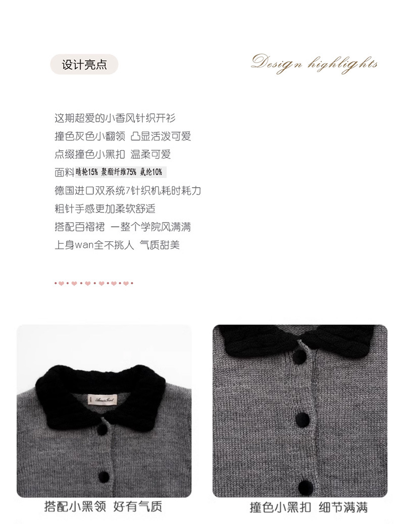 여자 한국 스타일 대학 스타일 니트 카디건 스웨터 봄, 가을 2025 새로운 베이비 스타일 대비 색 옷깃 탑스토어 가기
