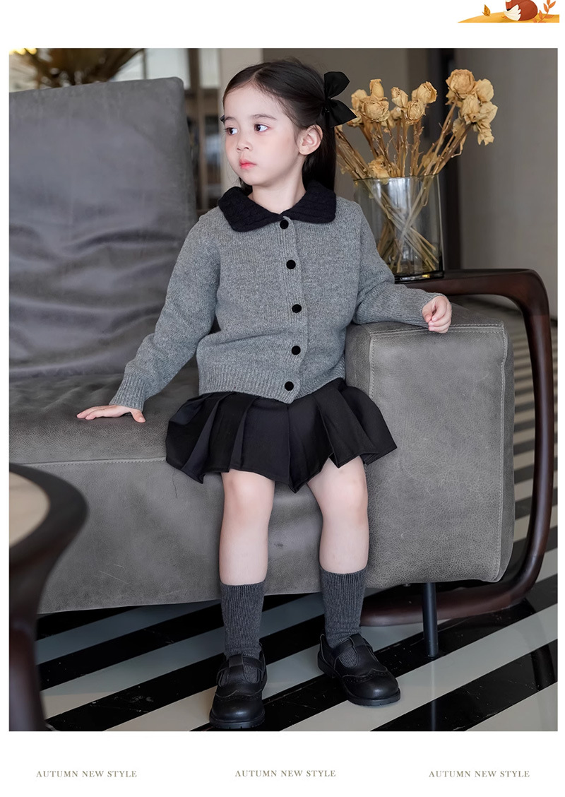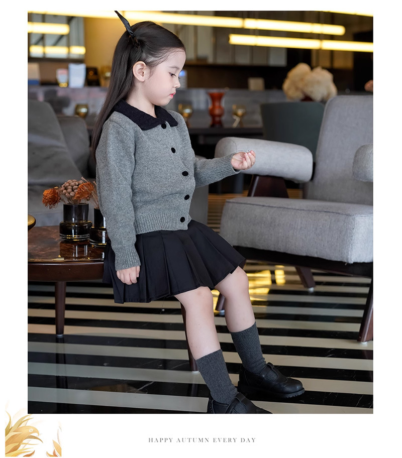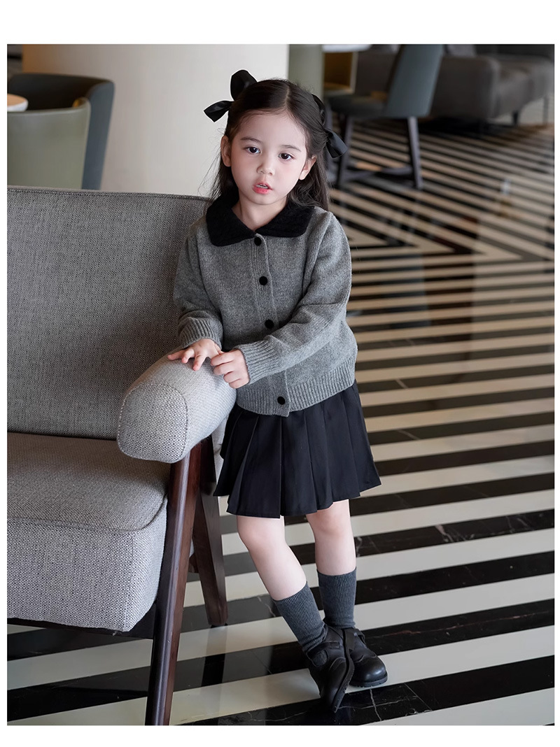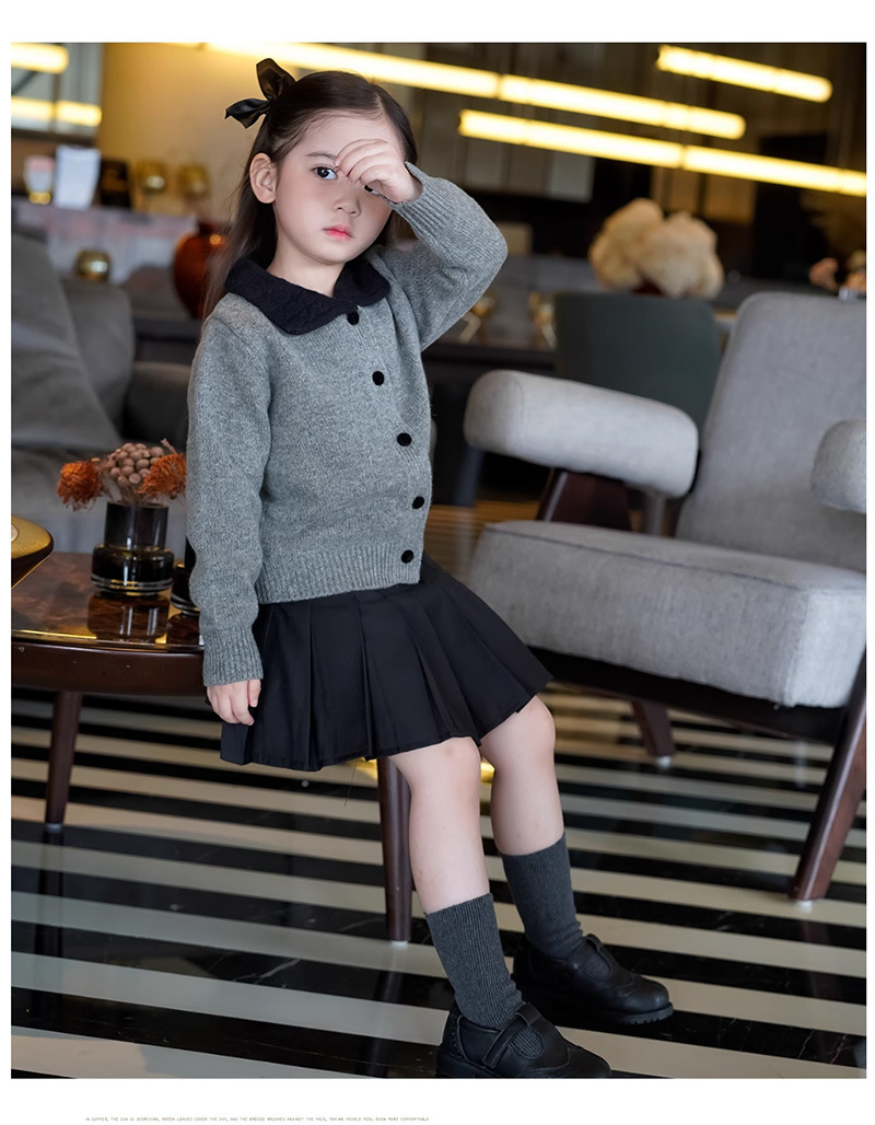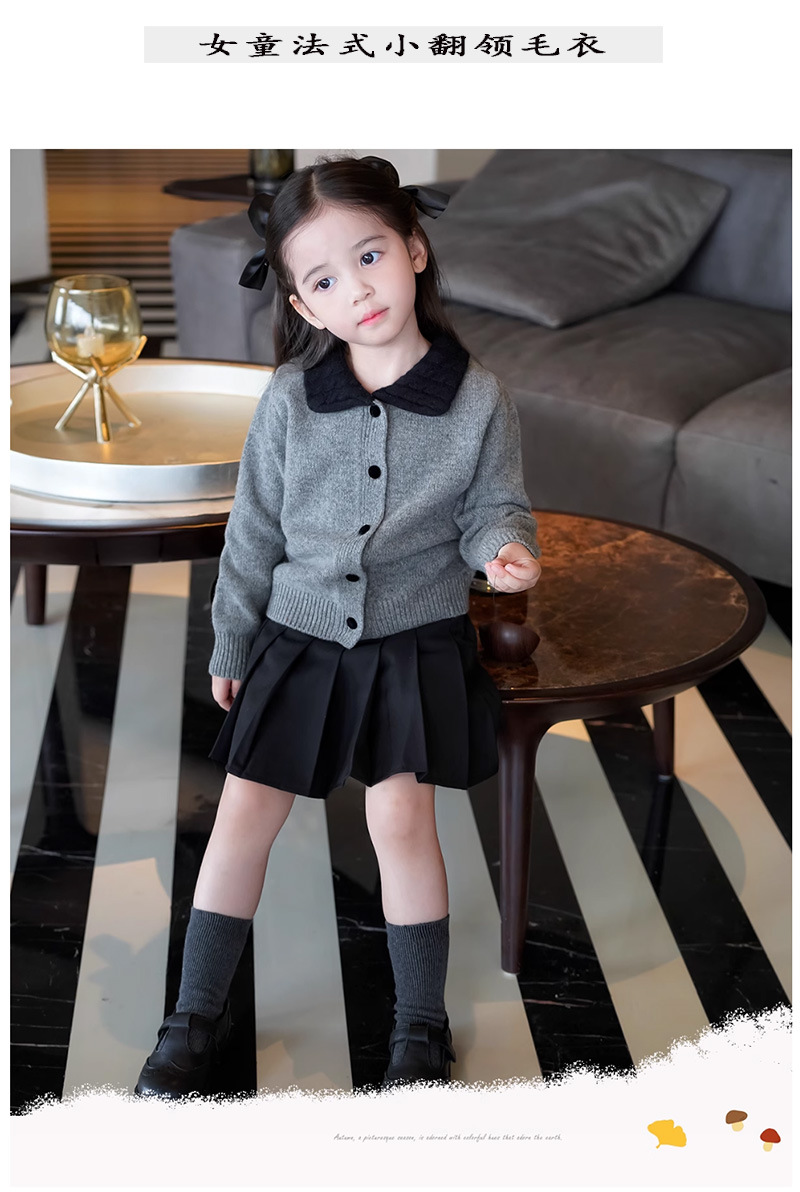 여자 한국 스타일 대학 스타일 니트 카디건 스웨터 봄, 가을 2025 새로운 베이비 스타일 대비 색 옷깃 탑스토어 가기