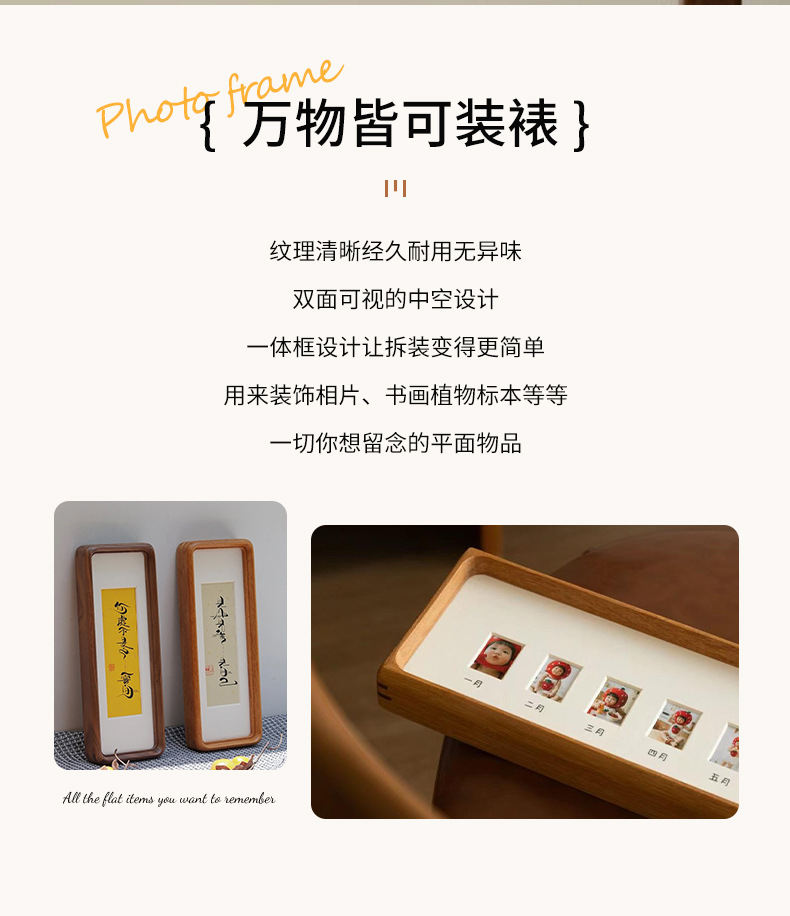 긴 단단한 나무 사진 프레임 도매 장형 및 테논 검은 호두 서예 및 그림 설치 프레임 사진 멀티 궁전 프레임 교수형 벽