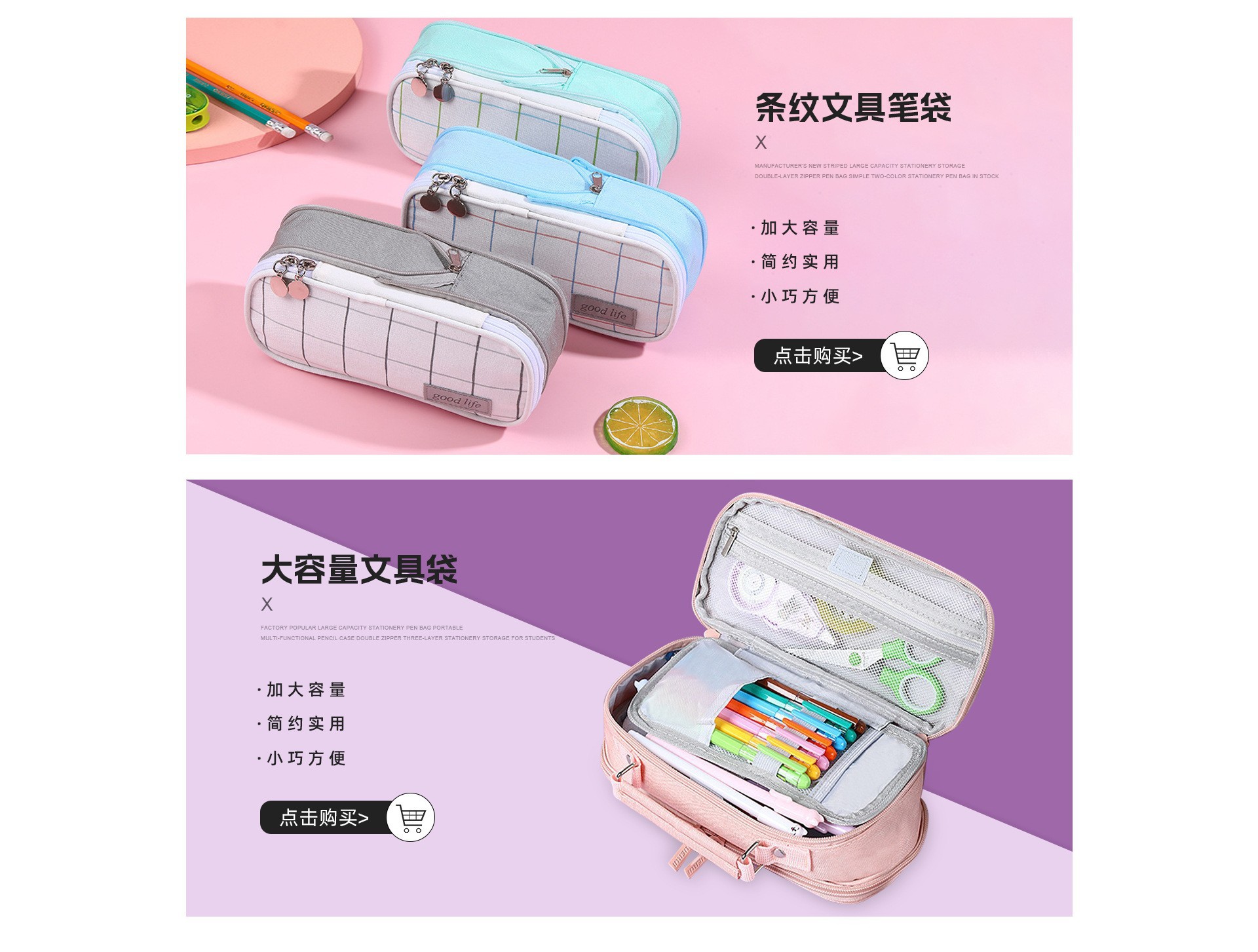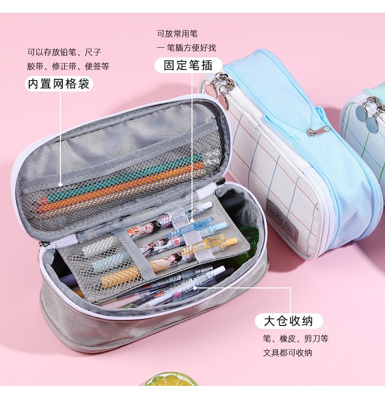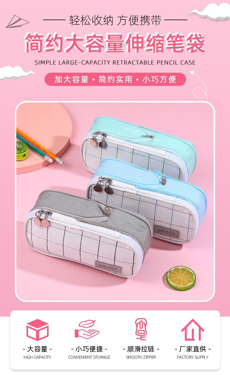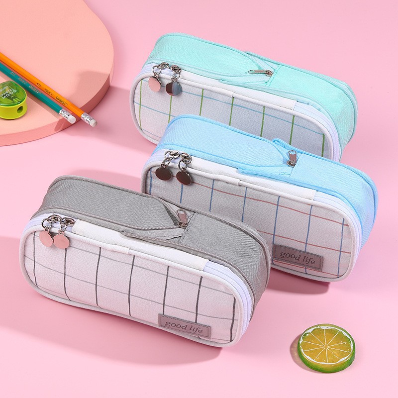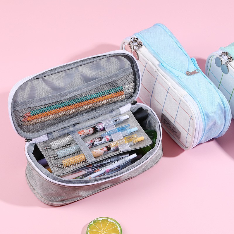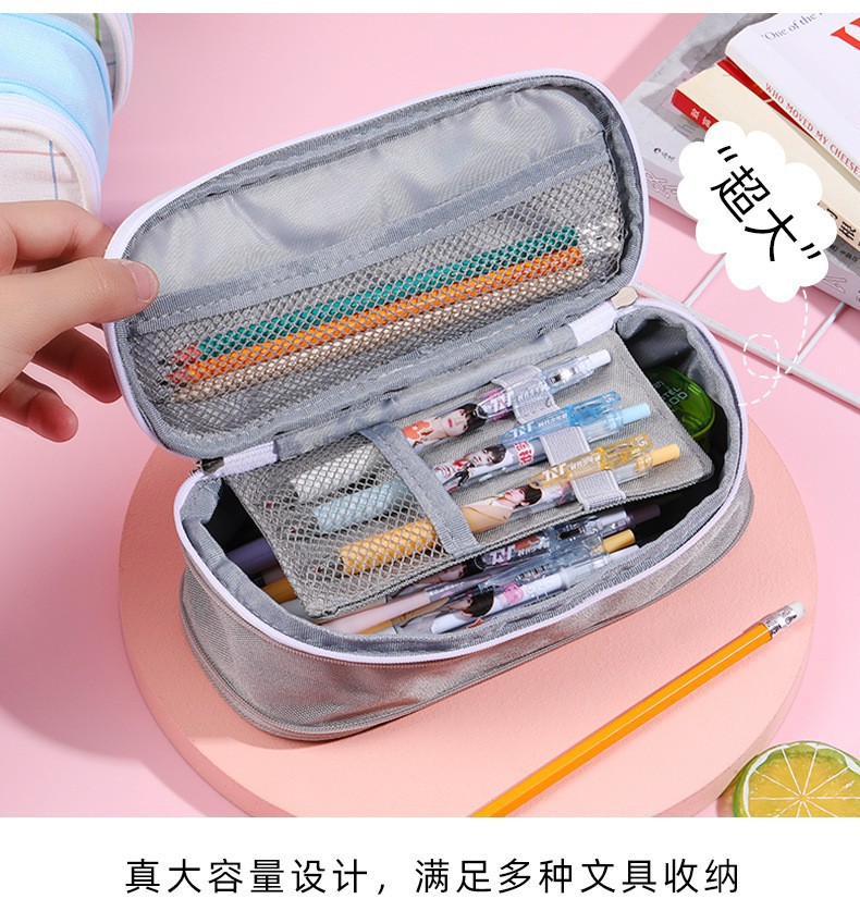 국경 간 재고 캔버스 다층 분리 연필 가방 간단한 학생 대용량 문구 가방 사탕 컬러 연필 가방 도매스토어 가기