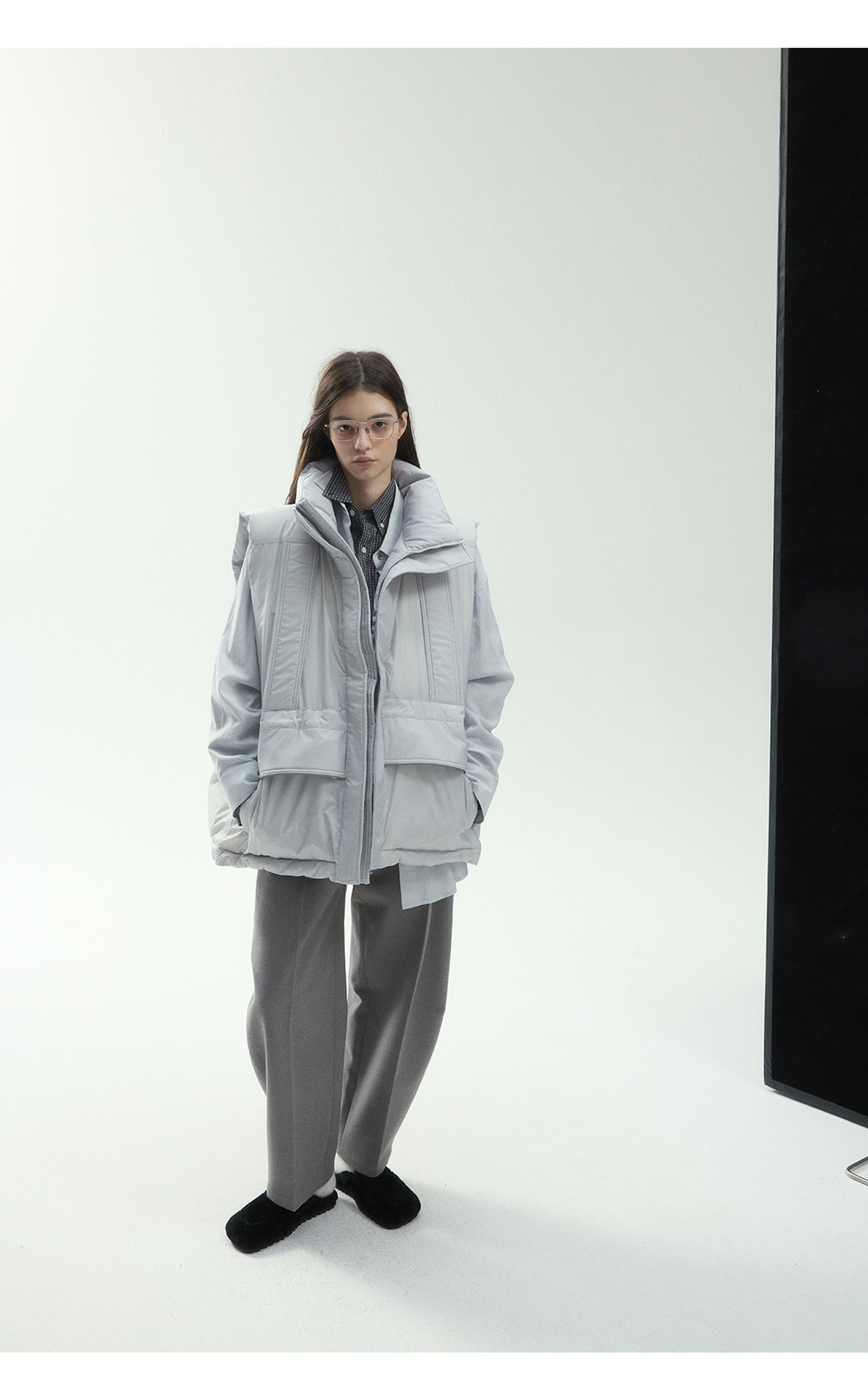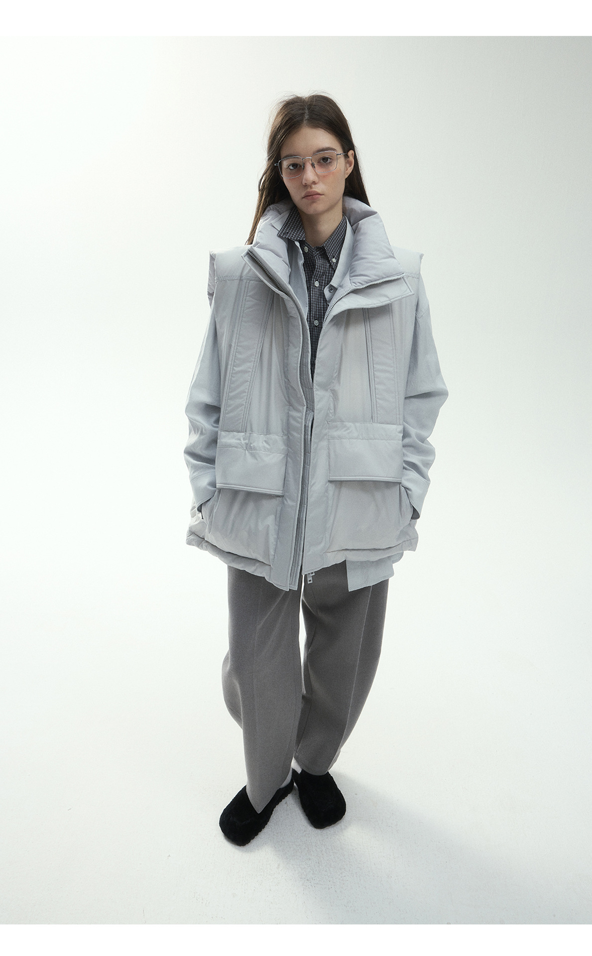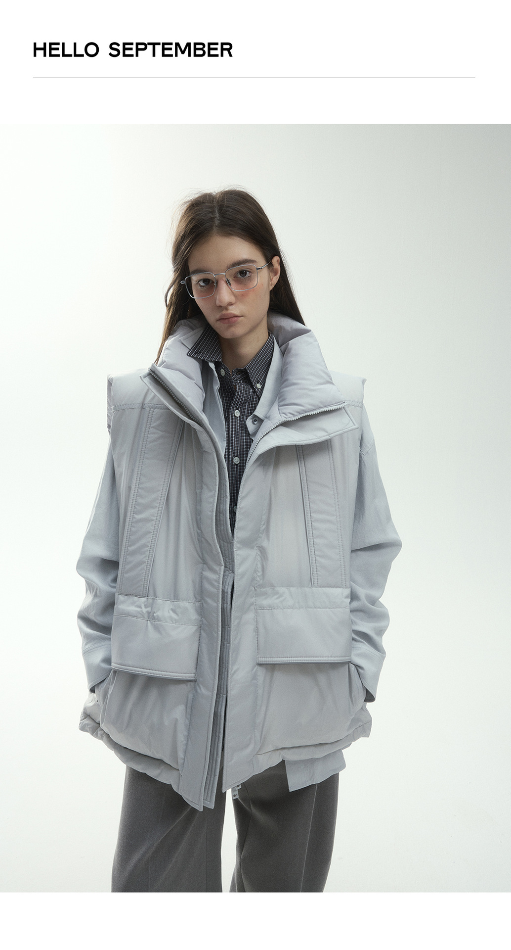 [언제] 새로운 느슨한 지퍼 민소매 프로필 90 새로운 국가 표준 따뜻한 다운 재킷 조끼 코트 여성 V5520