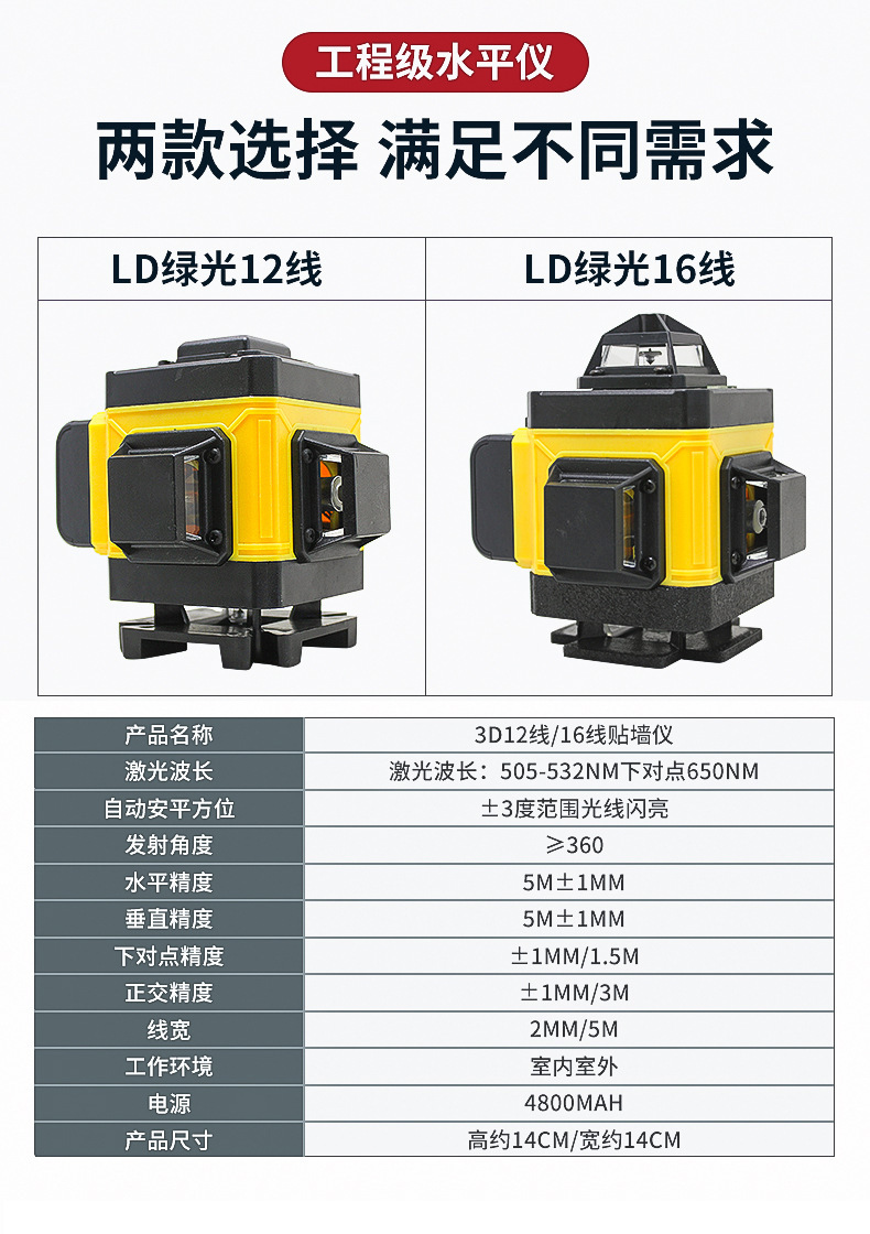 레이저 레벨기 12라인 녹색광 야외 강광 원격 제어 자동 수평 조정기