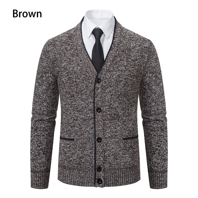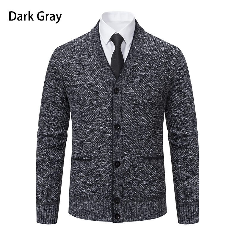 국경을 넘는 새로운 대외 무역 가을과 겨울 레저 기모 남성 카디건 긴소매 청소년 칼라 스웨터 남성용 카디건 코트