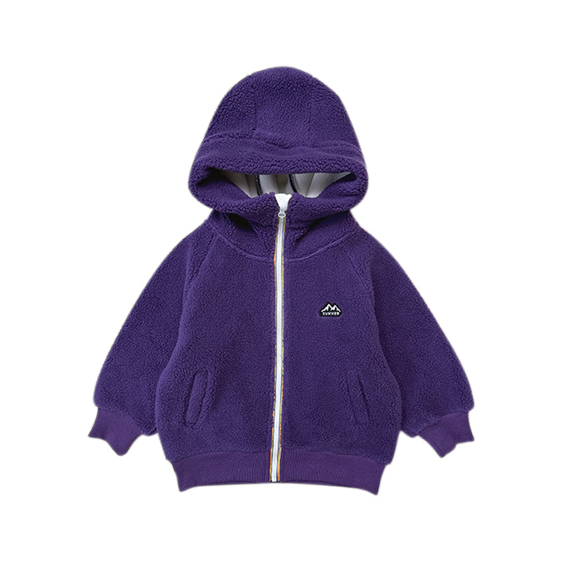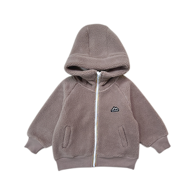 山系童装儿童羊羔绒外套2024冬新款女童简约保暖连帽上衣一件代undefined