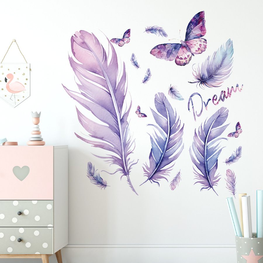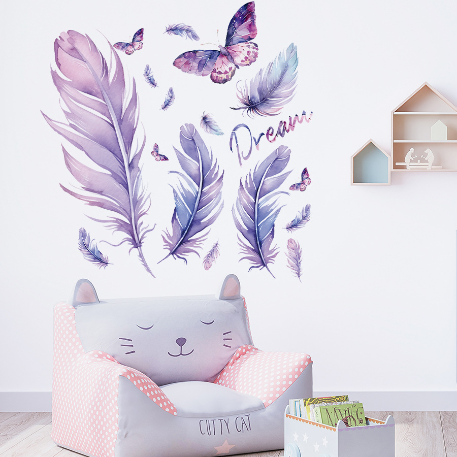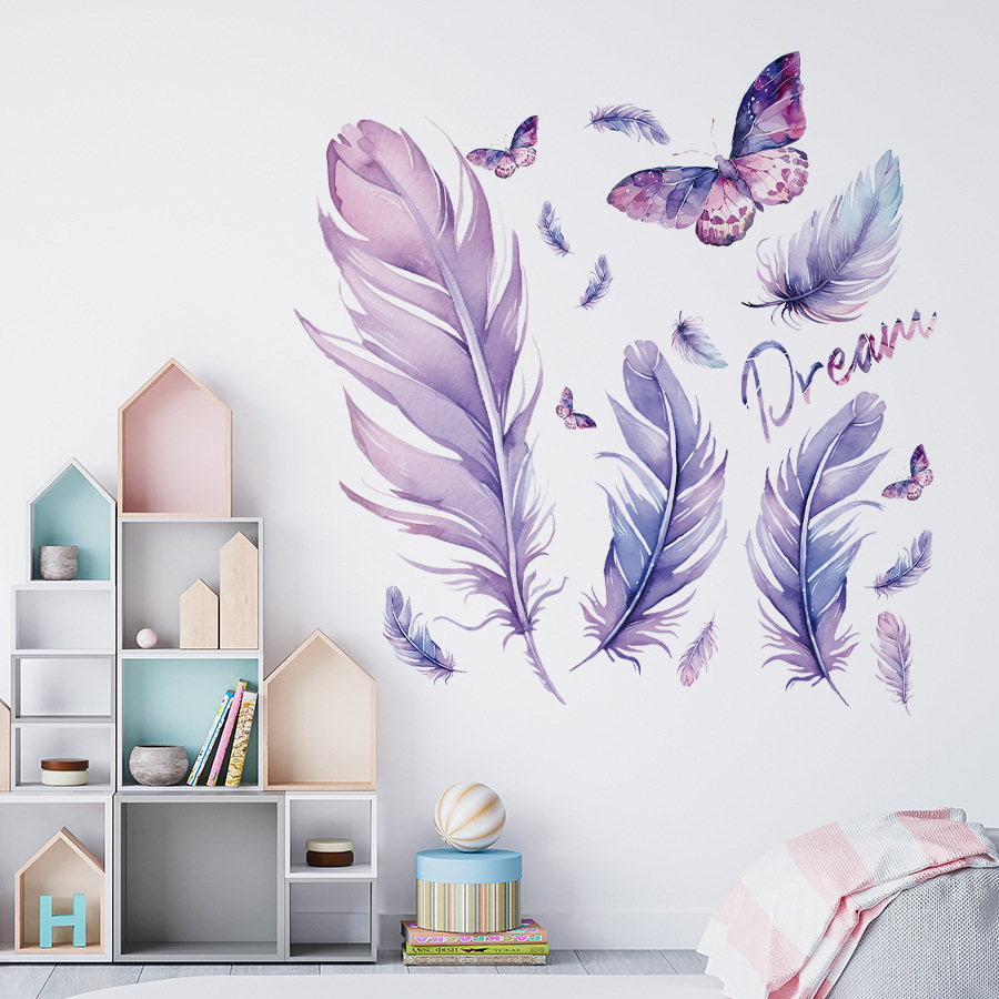 만화 보라색 나비 깃털 자기 접착 벽 스티커 Ins 소녀 스타일 방 배경 벽 장식 스티커 ZN3077F스토어 가기
