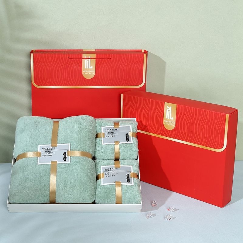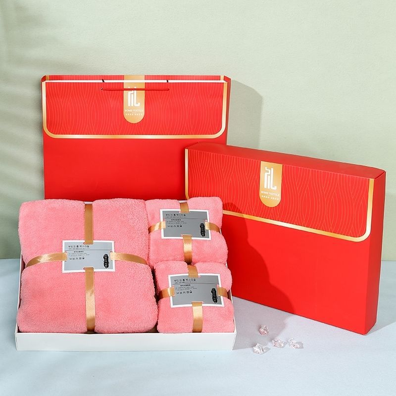 산호 고밀도 수건 목욕 수건 세 조각 선물 상자 비즈니스 선물 흡수 비즈니스 회사 세트 손스토어 가기