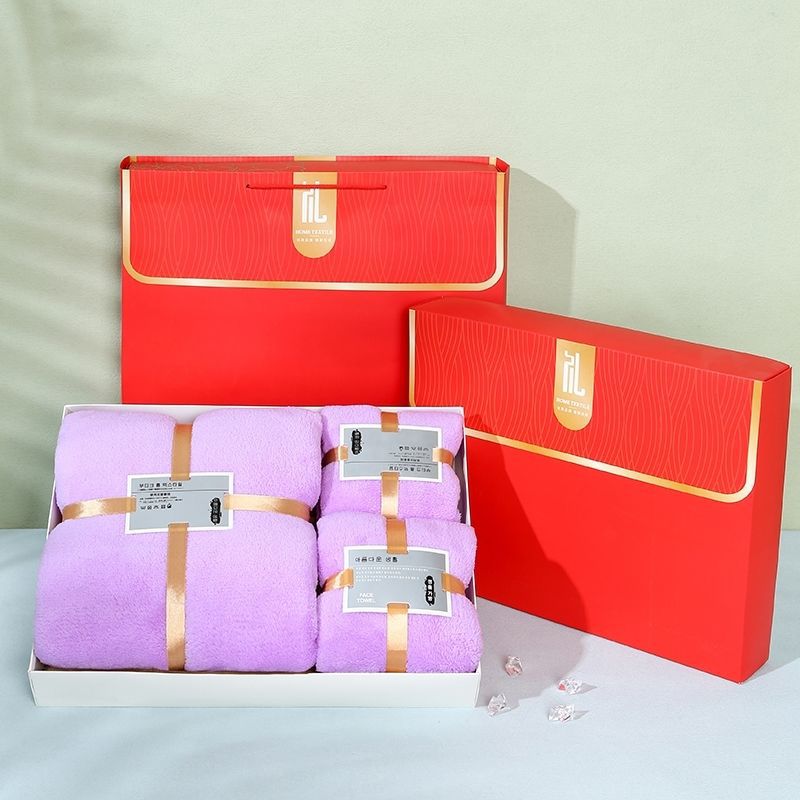 산호 고밀도 수건 목욕 수건 세 조각 선물 상자 비즈니스 선물 흡수 비즈니스 회사 세트 손