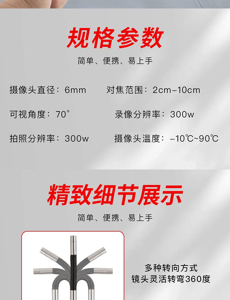 360도 회전 내시경 산업용 자동차 수리 고화질 카메라 내시경 휴대용 파이프 검사 도구스토어 가기