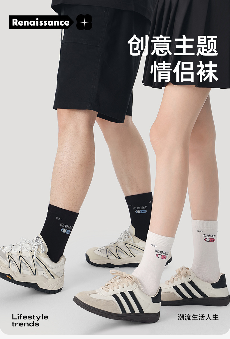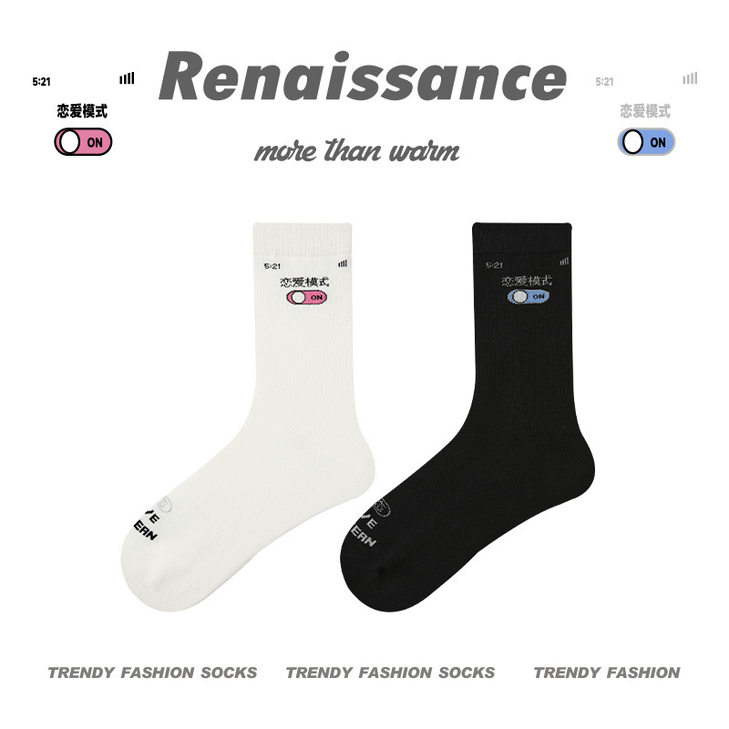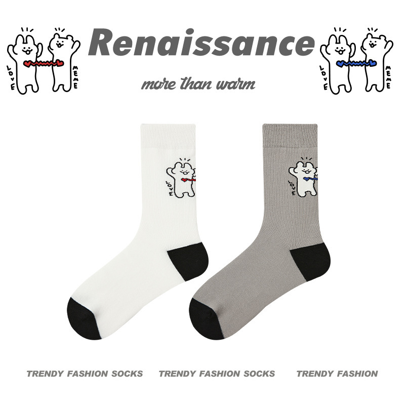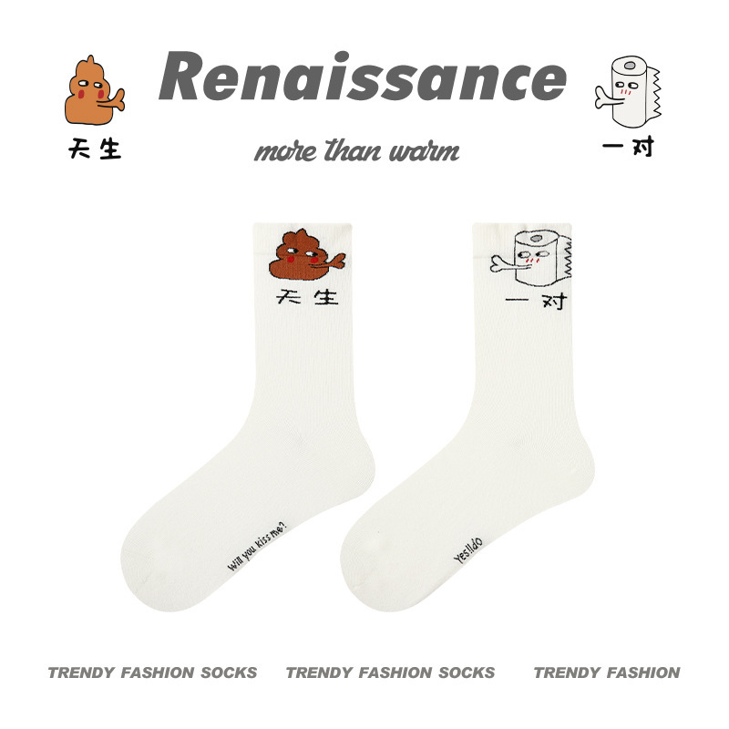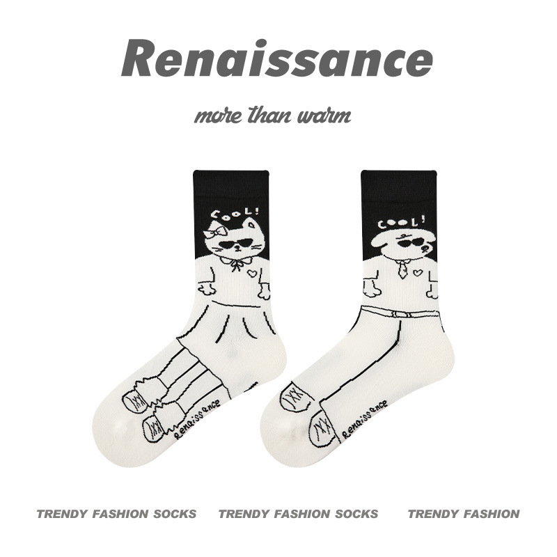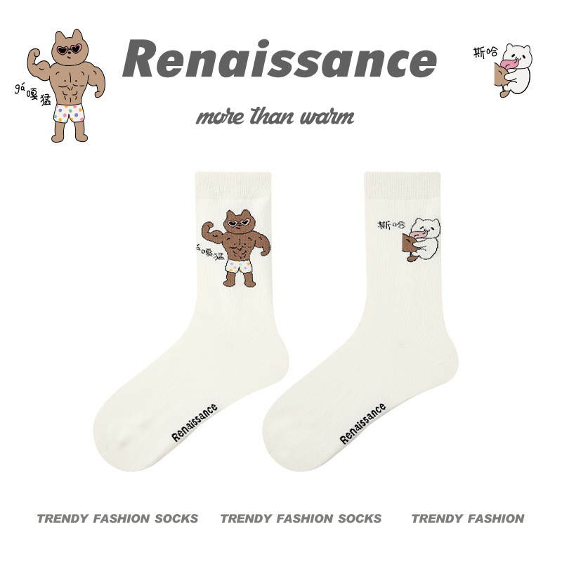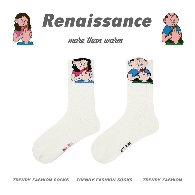 르네상스 창조적 인 양말 여성 여름 만화 귀여운 중간 튜브 양말 남자의 봄과 가을 커플 스포츠 면 양말