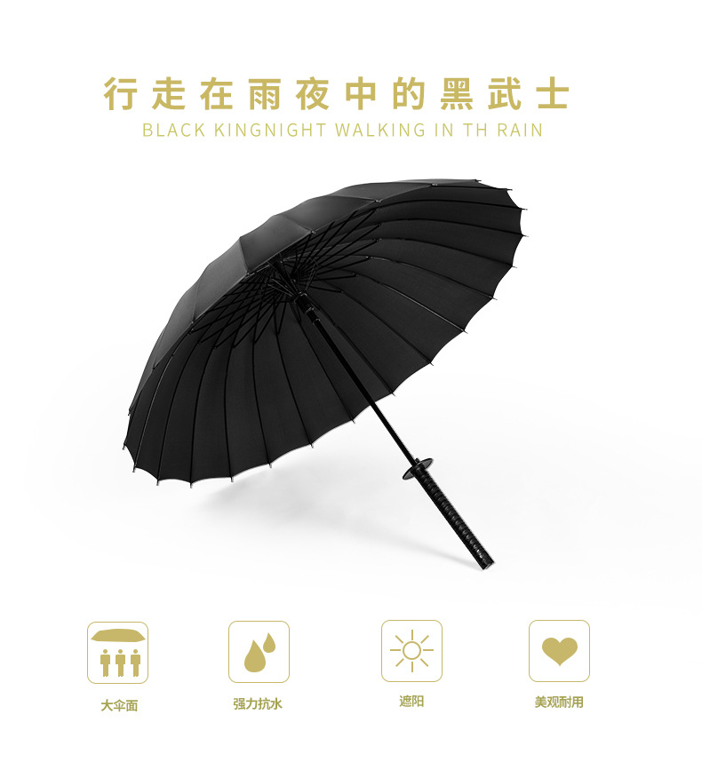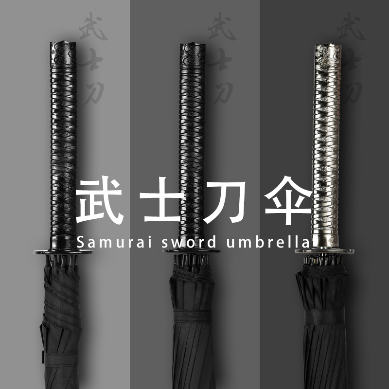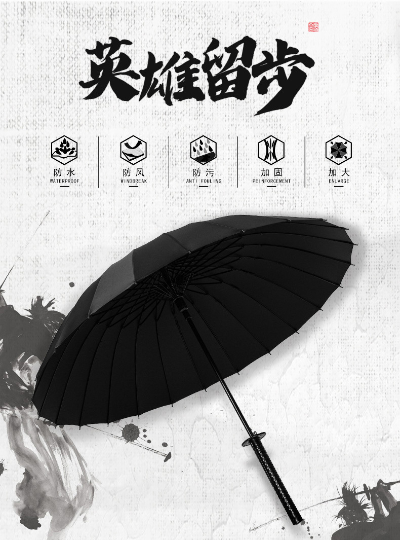 사무라이 우산 롱 핸들 우산 남성 자동 대형 일본 크리에이티브 쿨 핸섬 나이프 우산 검 우산 스트레이트 핸들 광고