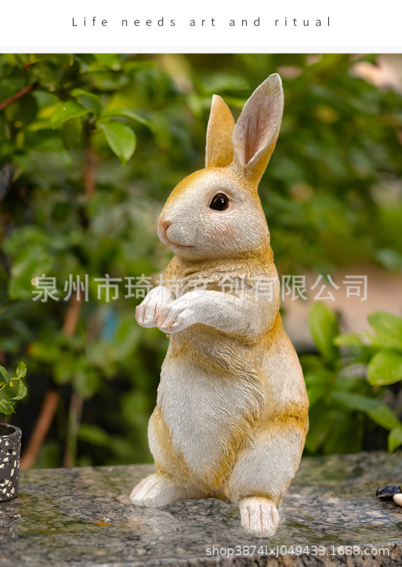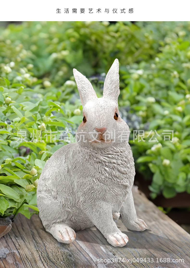 야외 안뜰 정원 풍경 시뮬레이션 동물 흰 토끼 장식 장식품 마이크로 풍경 수지 공예 장식품스토어 가기