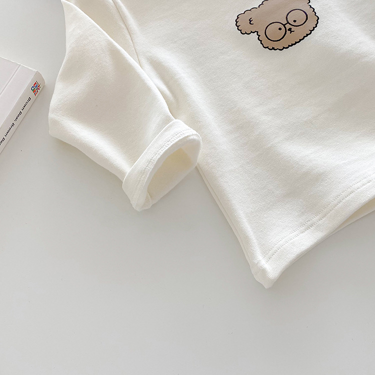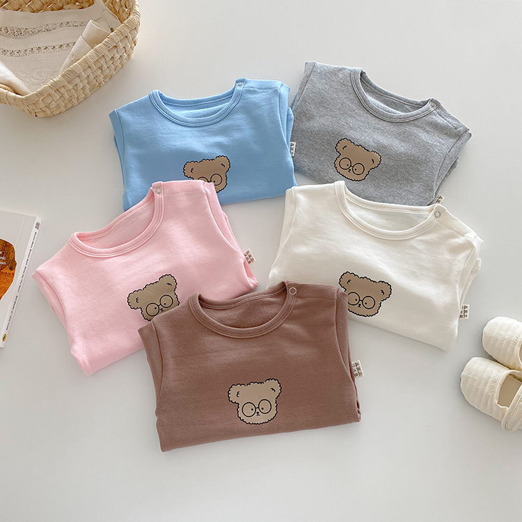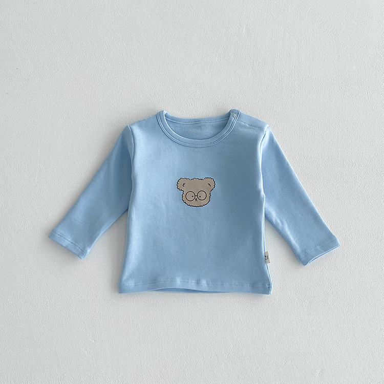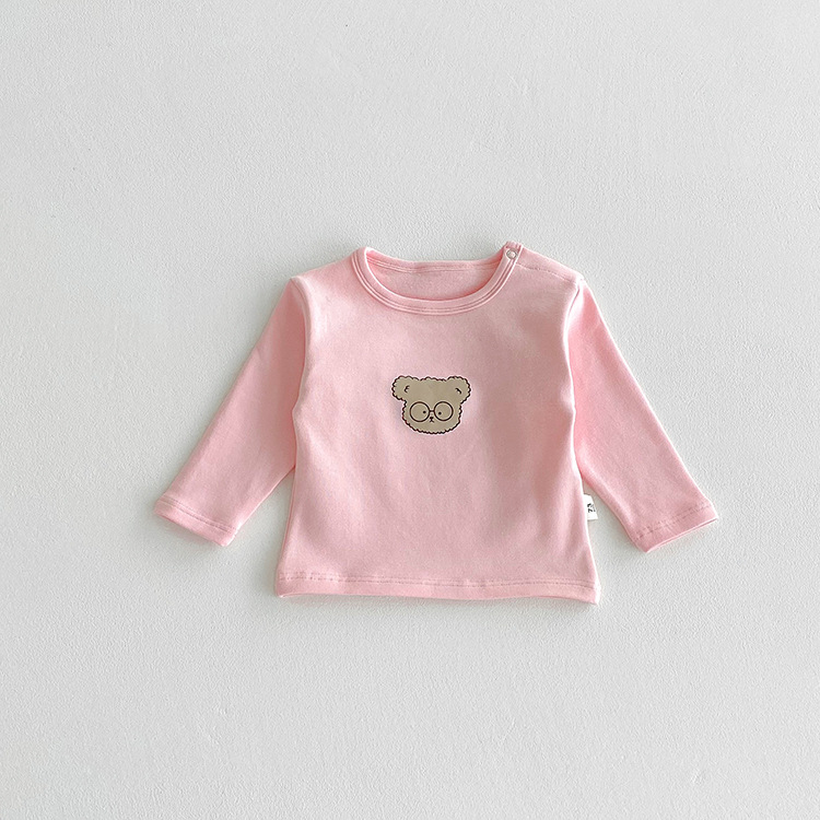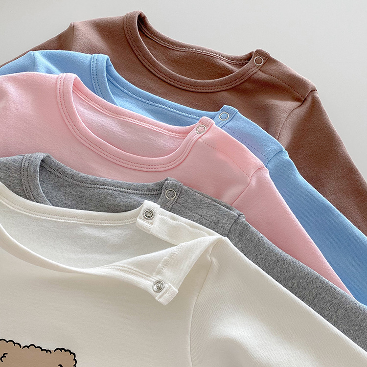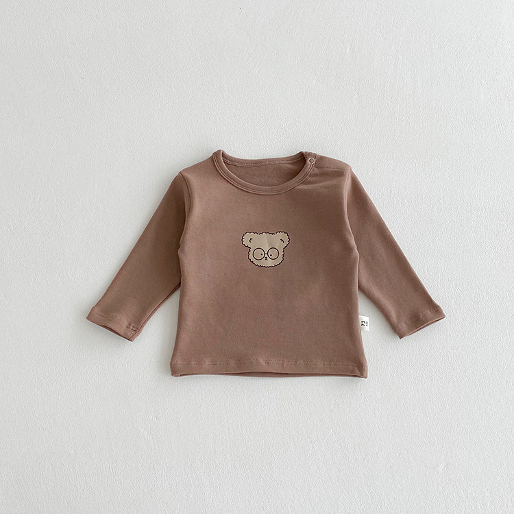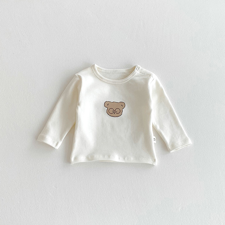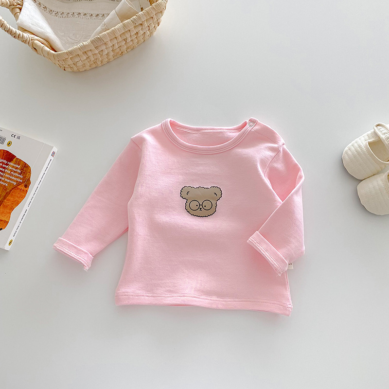 2024 한국식 아기 간단한 귀여운 곰 면 긴팔 티셔츠 아기 가을과 겨울 샌딩 따뜻한 베이스 셔츠