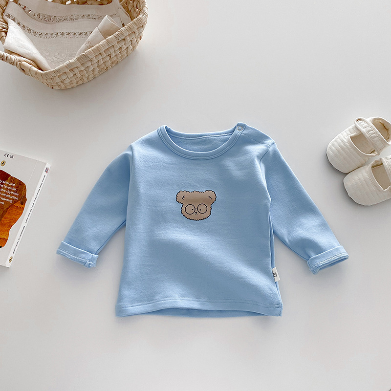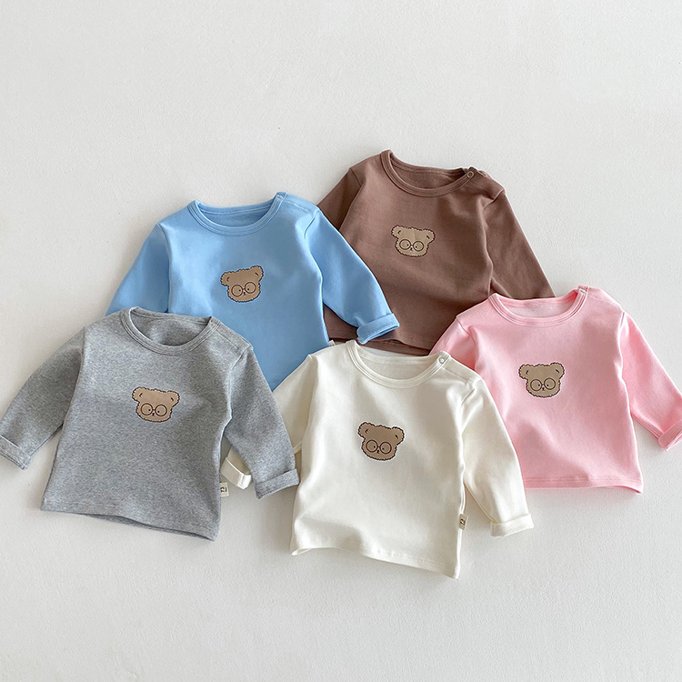 2024 한국식 아기 간단한 귀여운 곰 면 긴팔 티셔츠 아기 가을과 겨울 샌딩 따뜻한 베이스 셔츠스토어 가기