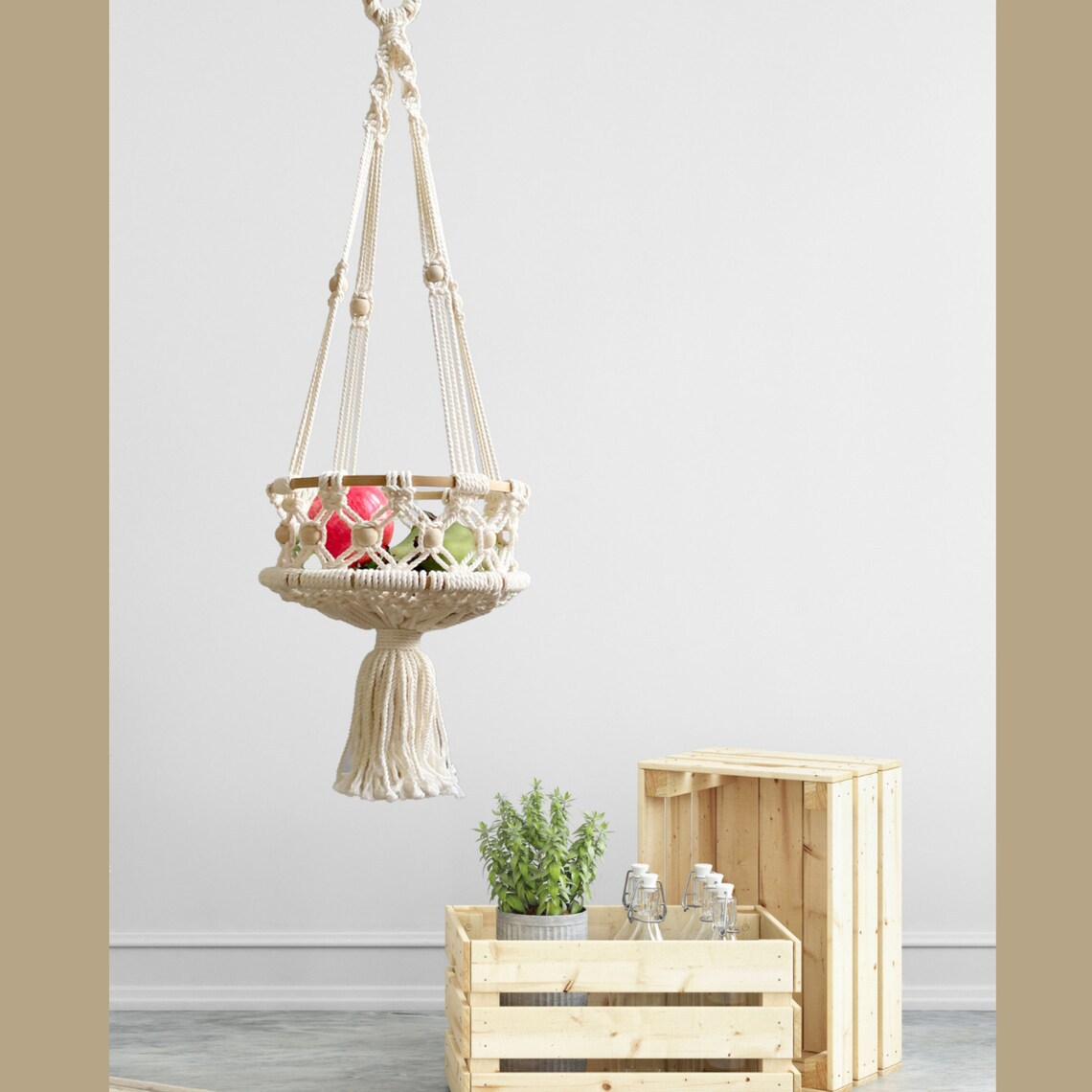 북유럽 스타일의 손으로 짠 면화 로프 보관 바구니 주방 과일 및 야채 벽걸이 바구니 원예 공장 교수형 바구니 국경 간 공급스토어 가기