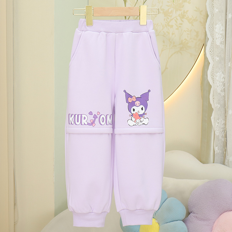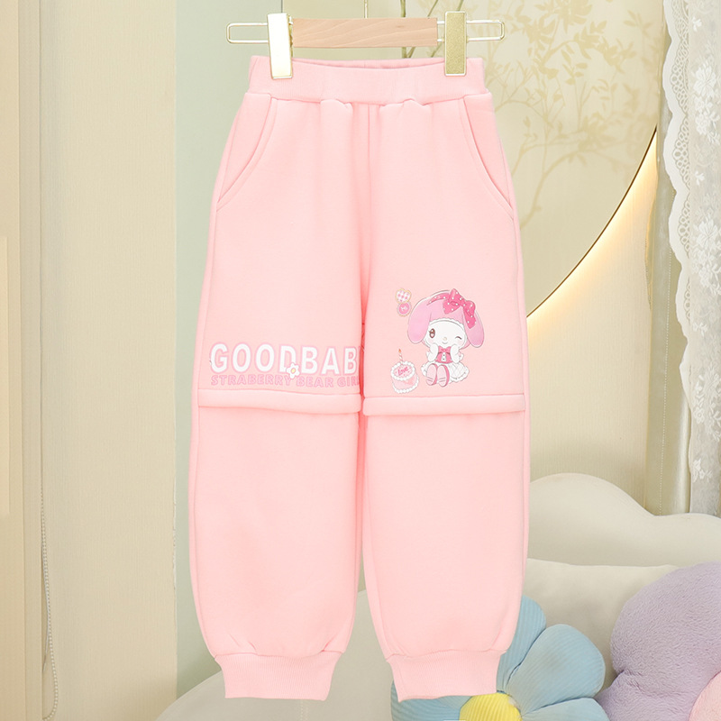 2024 가을과 겨울 새로운 여자 캐주얼 기모 두꺼운 느슨한 패션 스포츠 바지 스웨터 바지 어린이 바지