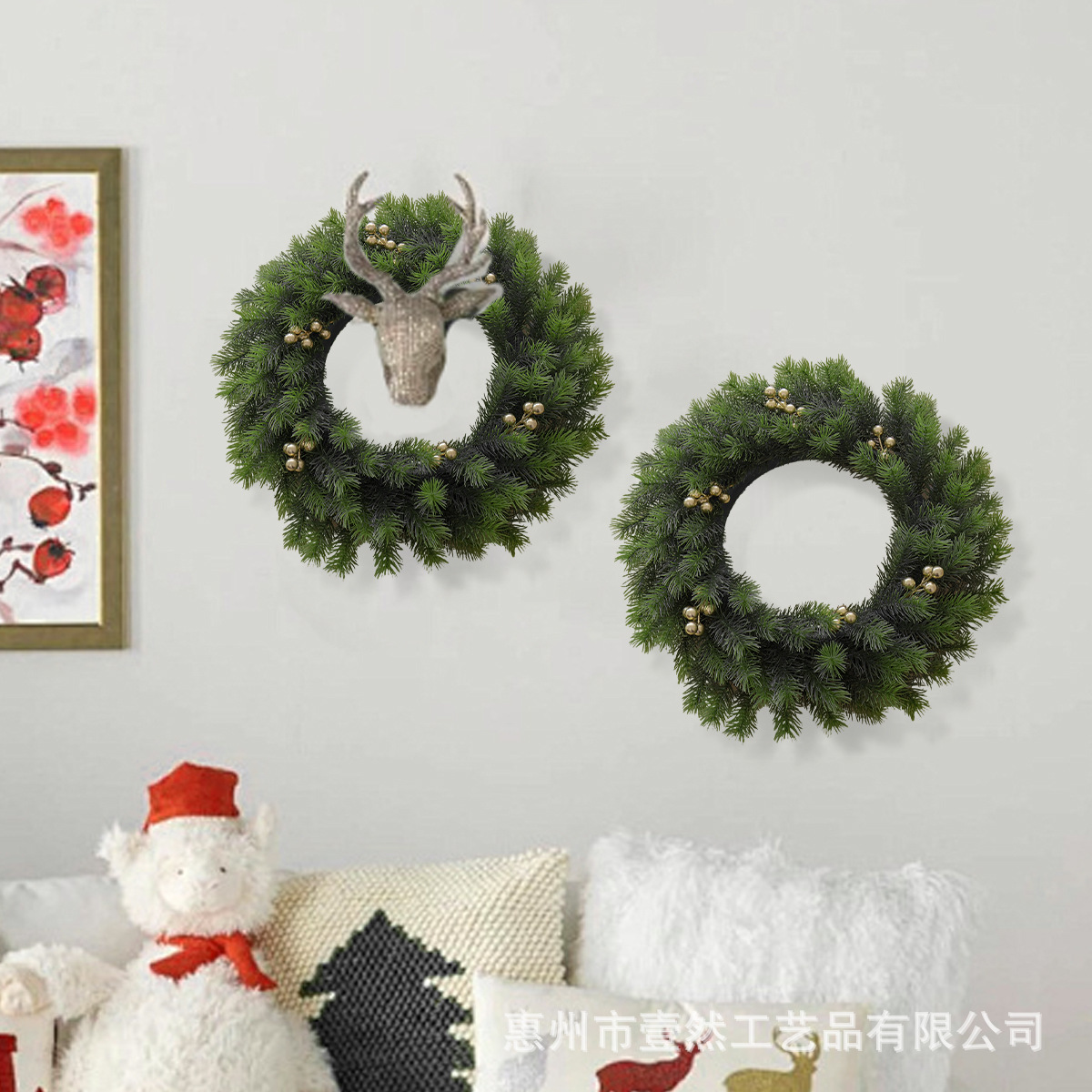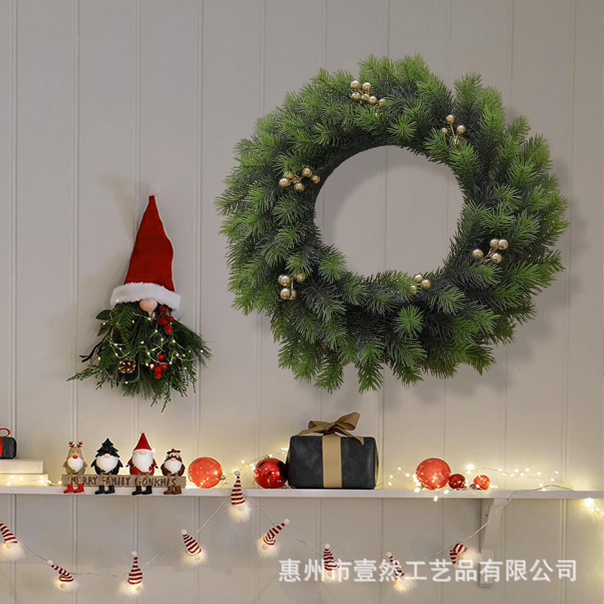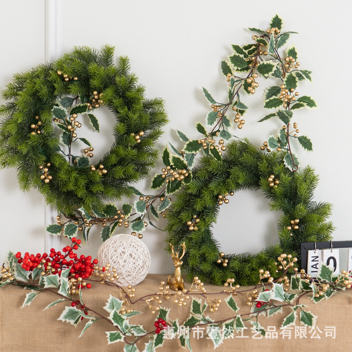 产品名称:30cm松针金果花环