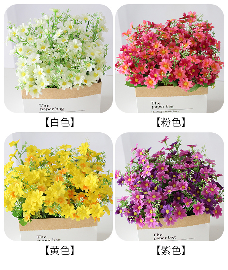 시뮬레이션 데이지 꽃다발 플라스틱 실크 헝겊 가짜 꽃 실내 거실 식탁 장식품 목가적 인 울타리 꽃 침대 꽃꽂이 장식