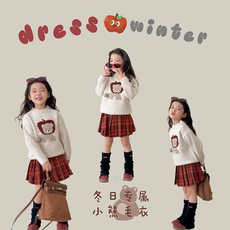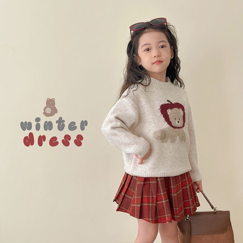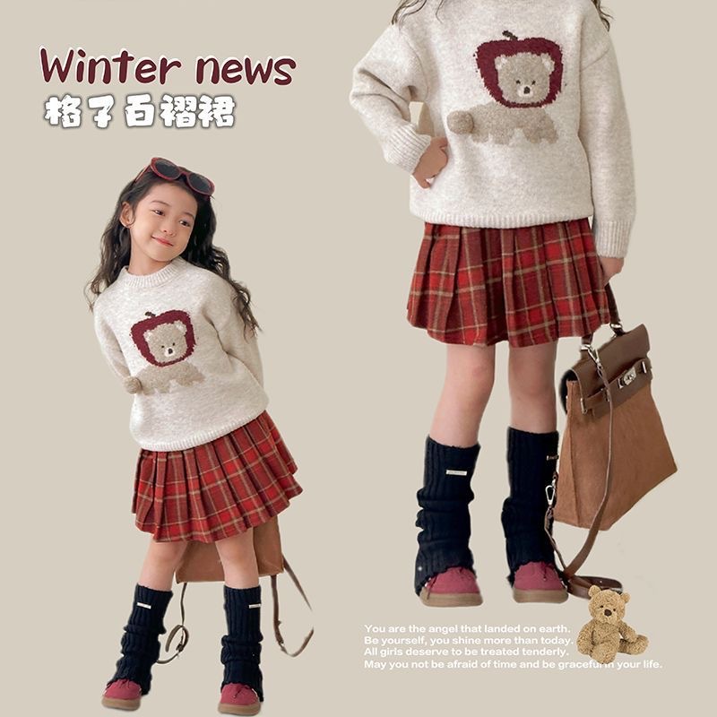 2024 새로운 아기의 겨울 서양식 치마 어린이 겨울 착용 새로운 격자 무늬 주름 치마 소녀 가을 겨울스토어 가기
