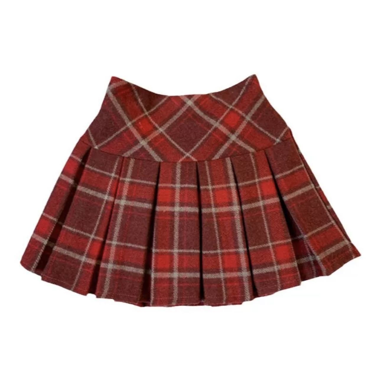 • 레드 체크 모직 보우 스커트가 너무 작습니다.