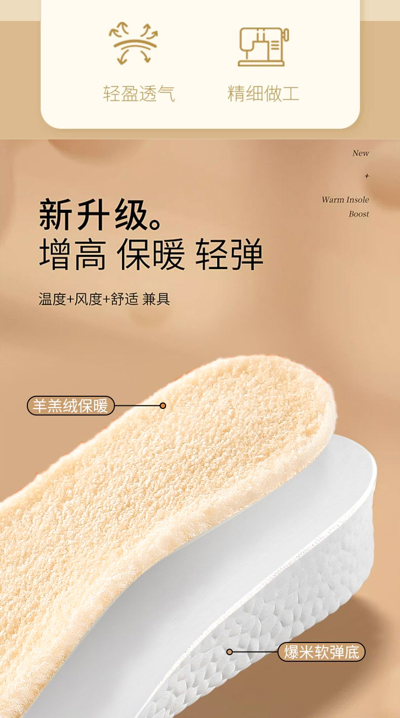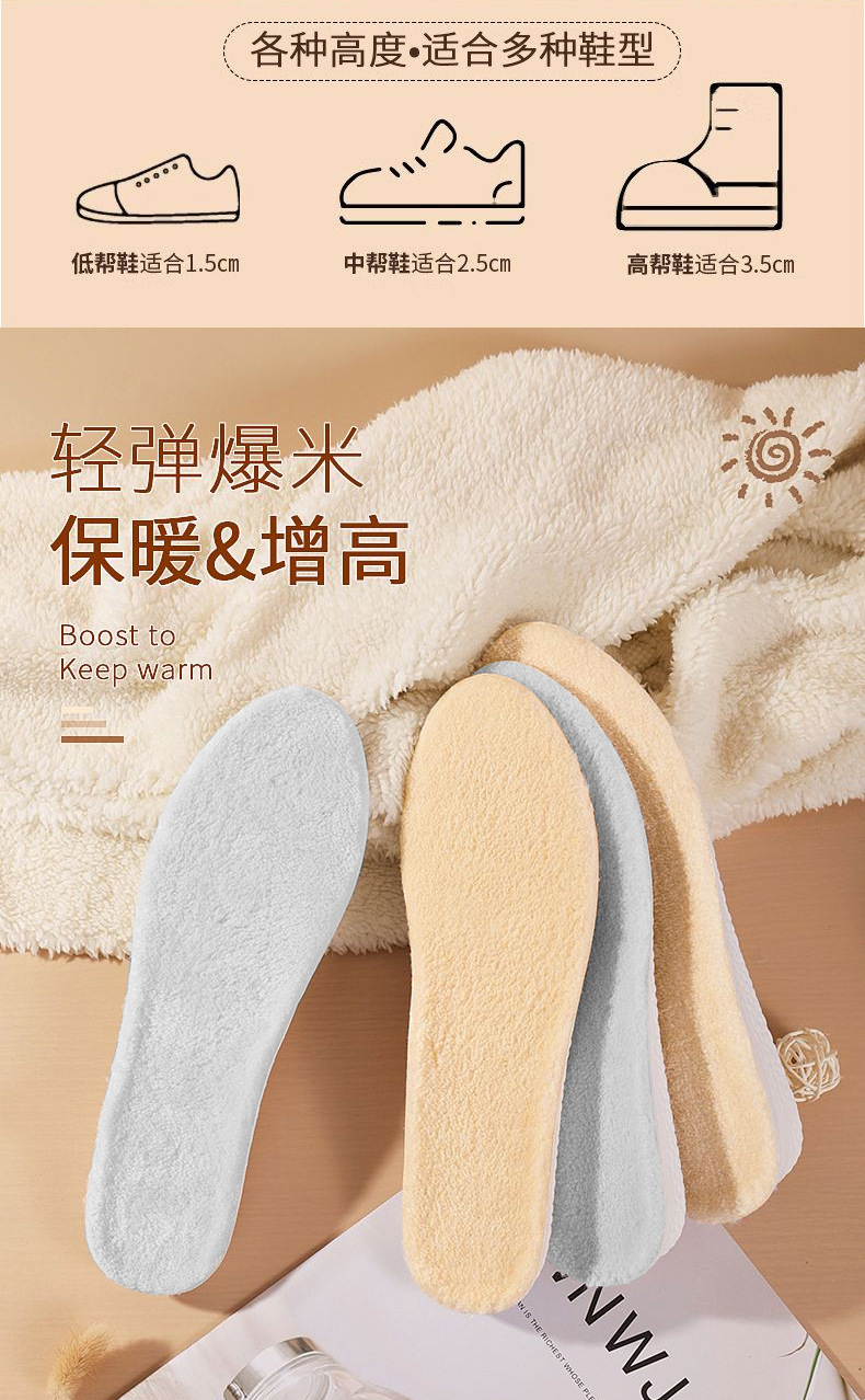 겨울 높은면 깔창 남성 및 여성 풀 패드 따뜻한 내한성 기모 지치지 않은 보이지 않는 높은 깔창스토어 가기