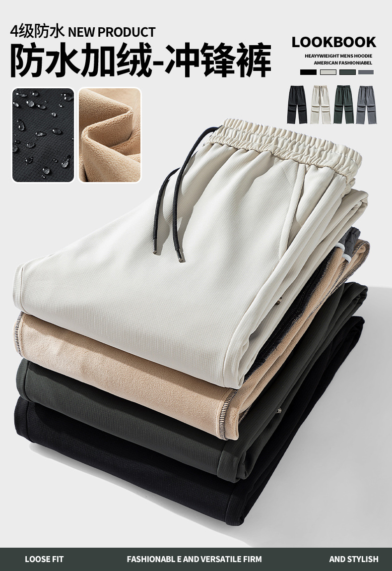 加绒加厚裤子男士秋冬户外防水防风美式工装冲锋裤宽松保暖休闲裤