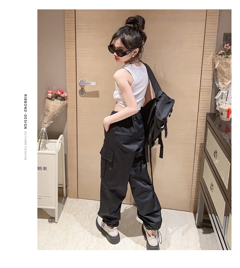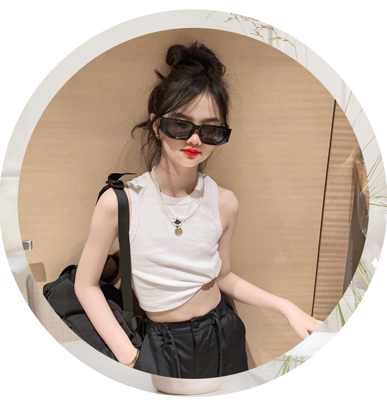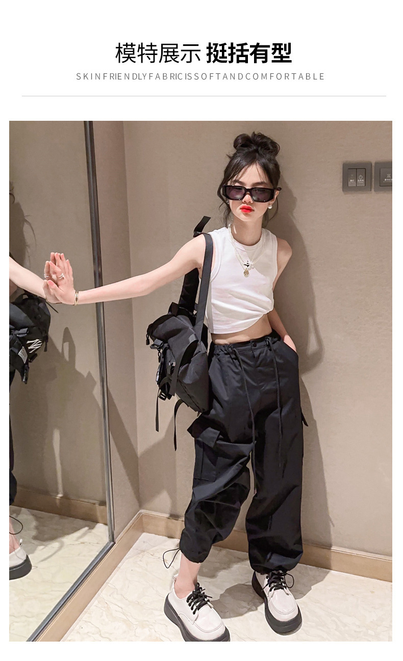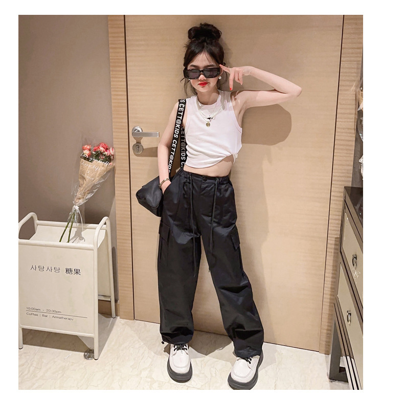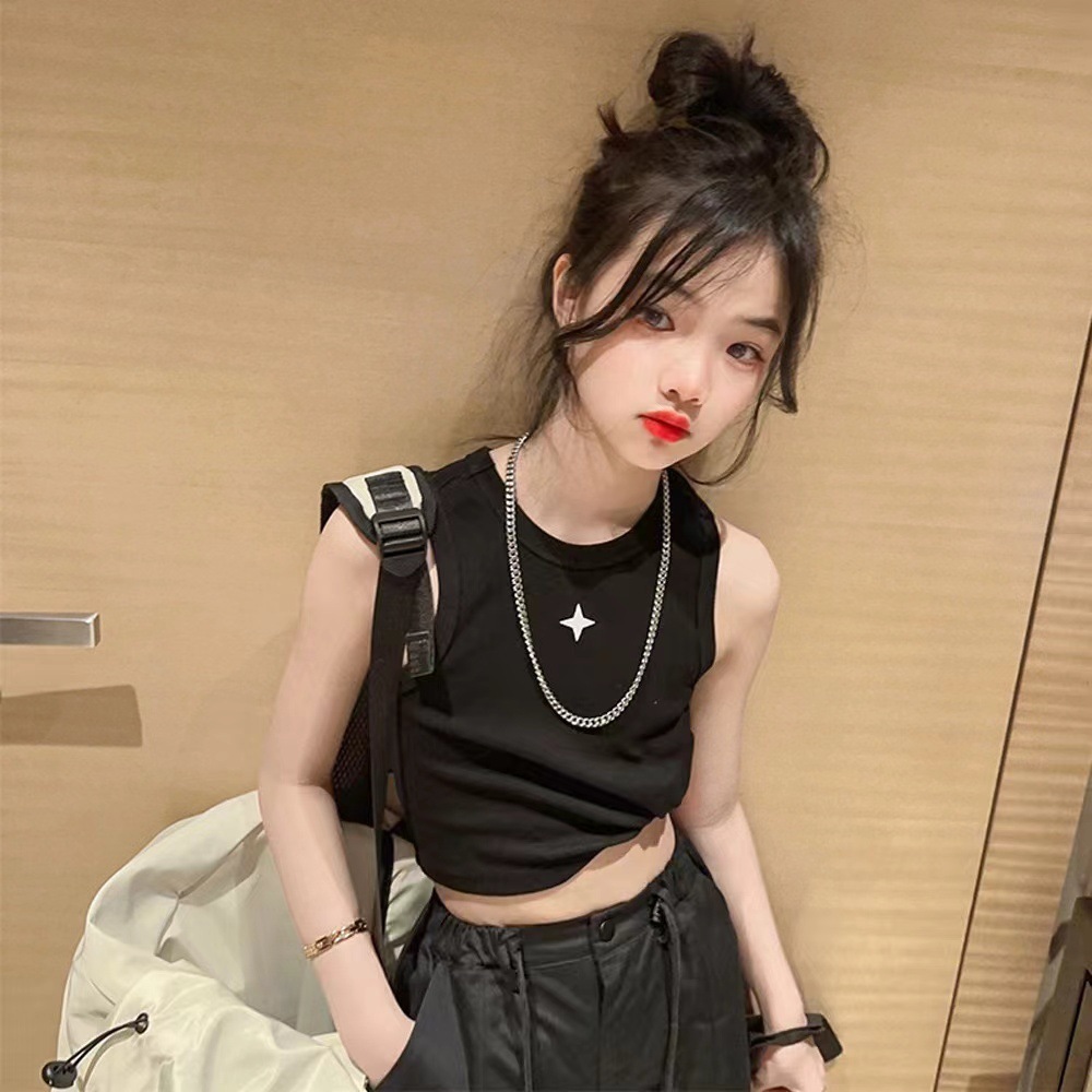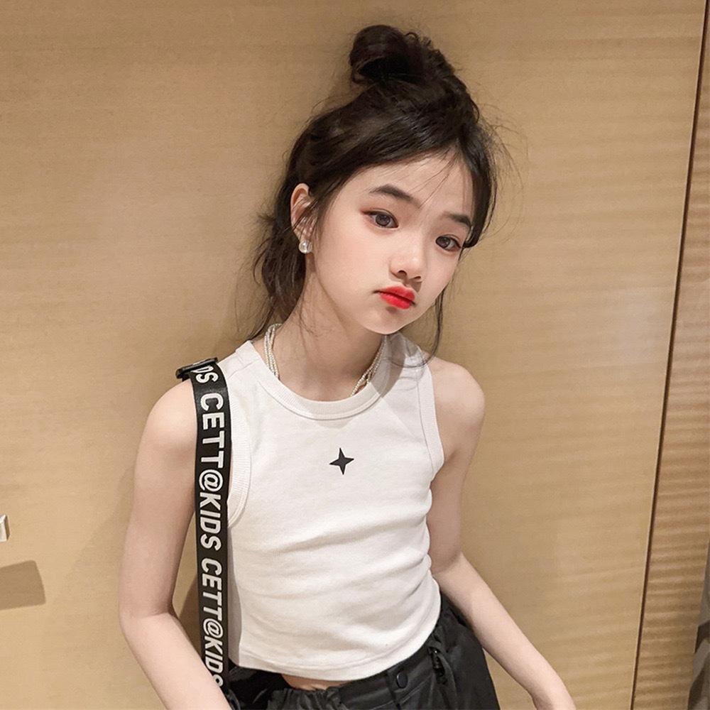 여름 새 여아 I 자형 조끼 와이드 어깨 짧은 자르기 톱 스포츠 스트리트 댄스 재즈 댄스 한국식 중소형 어린이스토어 가기