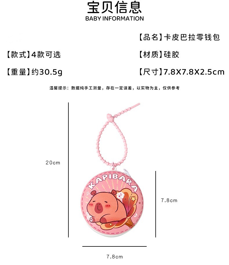 귀여운 카피 바라 키 체인 펜던트 카피 발라 실리콘 동전 지갑 어린이 변경 보관 가방 만화 이어폰 가방