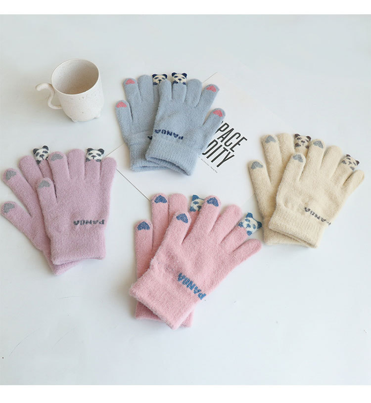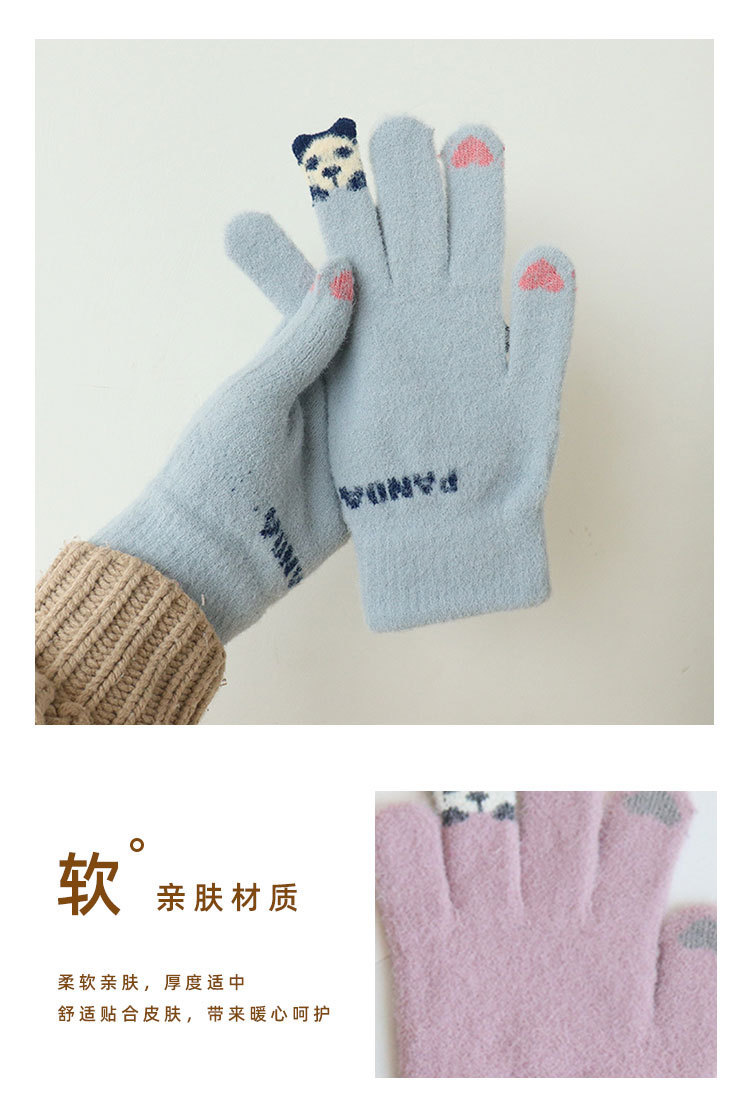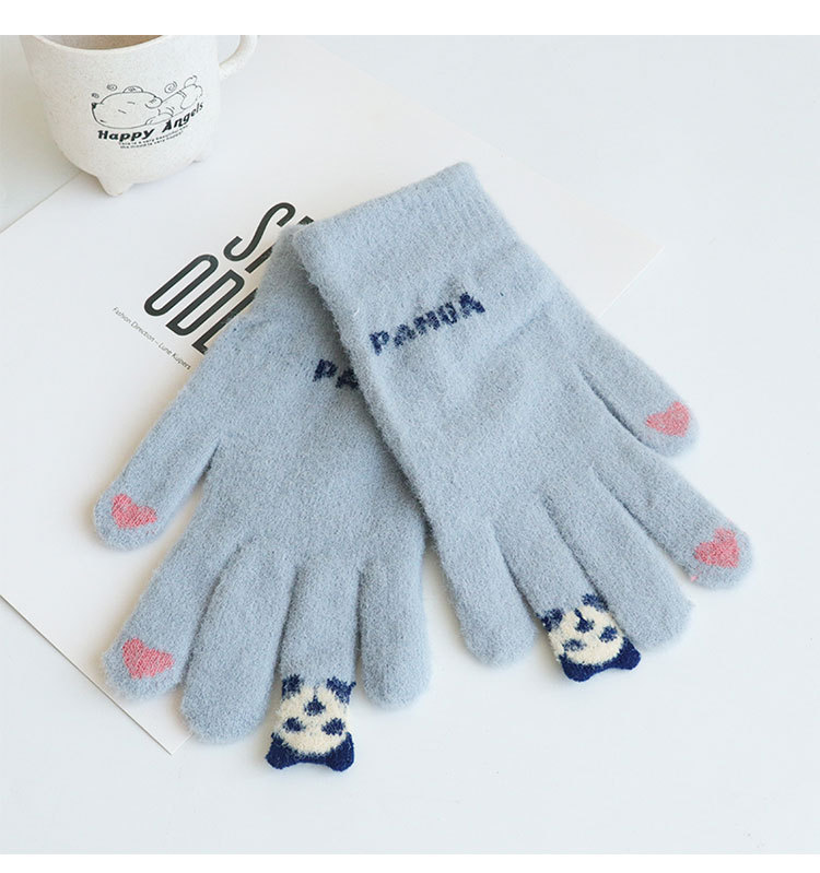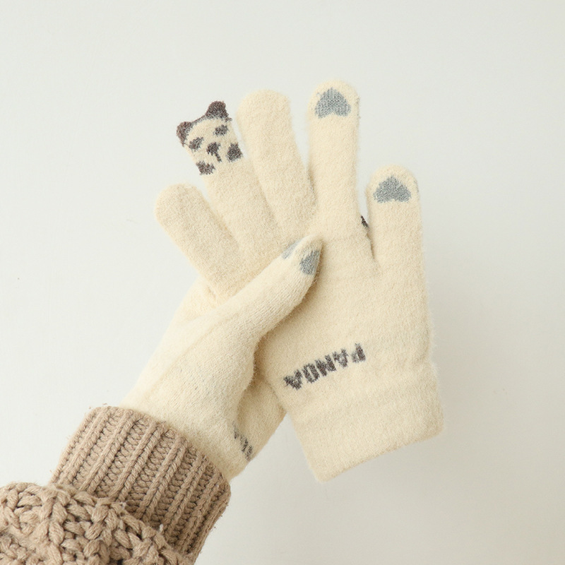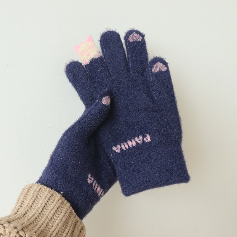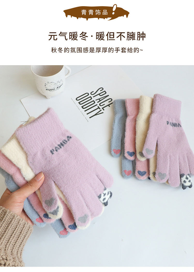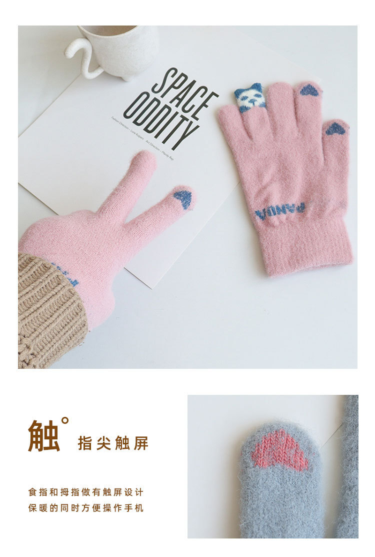 팬더 손가락 따뜻한 터치 스크린 장갑 다섯 손가락 만화 귀여운 한국 스타일 학생 커플 타고 소녀 가을과 겨울 감기 보호스토어 가기