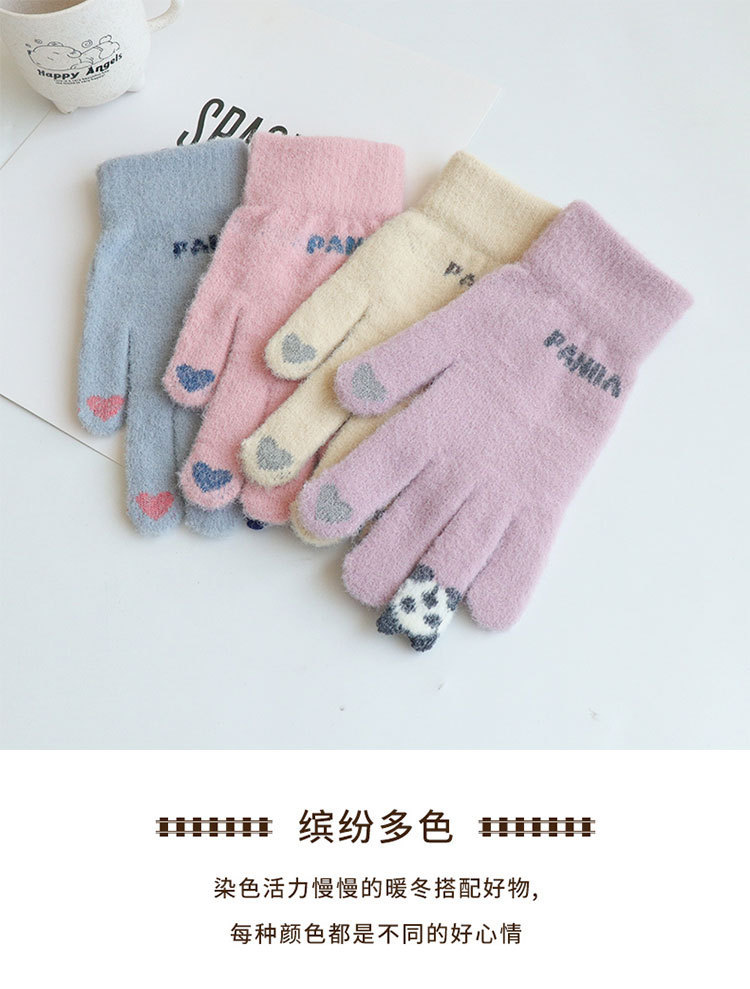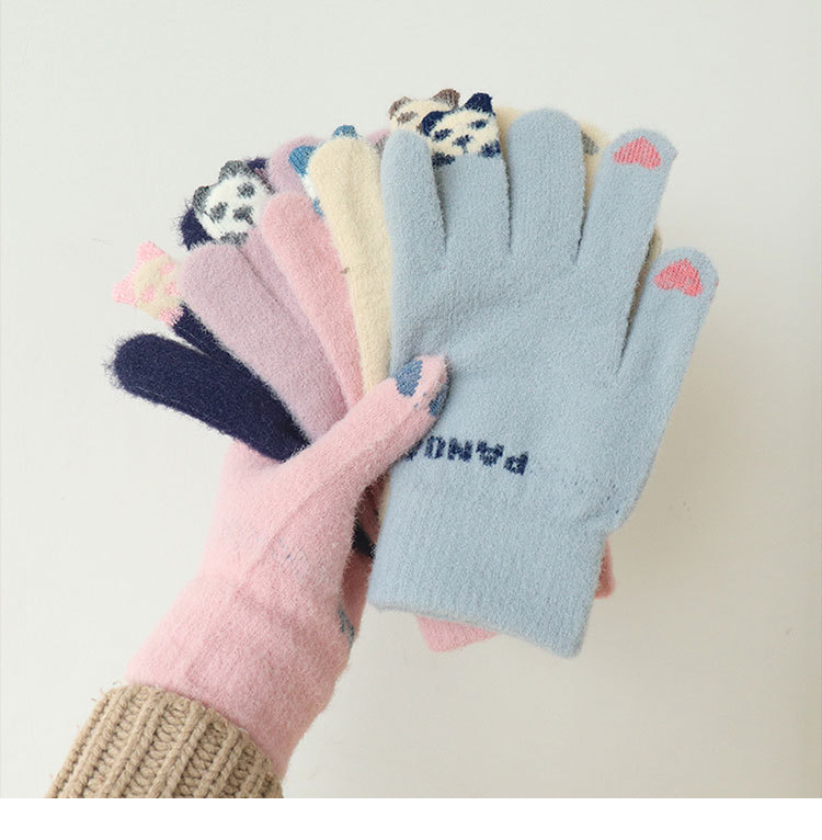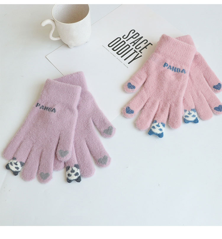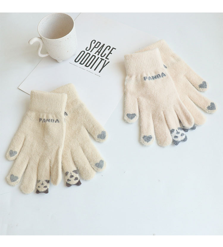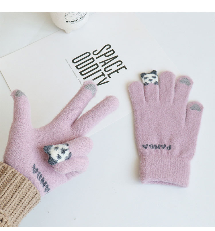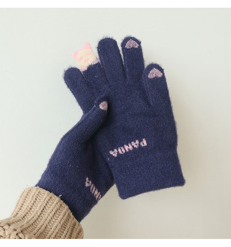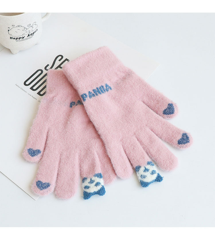 팬더 손가락 따뜻한 터치 스크린 장갑 다섯 손가락 만화 귀여운 한국 스타일 학생 커플 타고 소녀 가을과 겨울 감기 보호스토어 가기