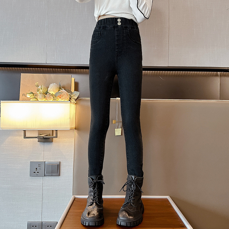 여아용 벨벳 청바지 슬림 스트레치 바지 2025 한국식 가을 겨울 두꺼운 여아용 다용도 타이트 팬츠