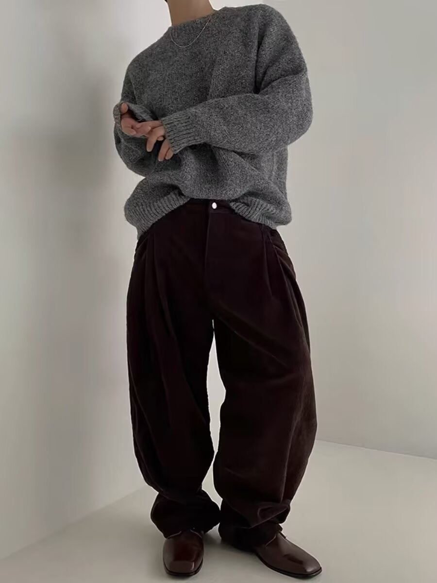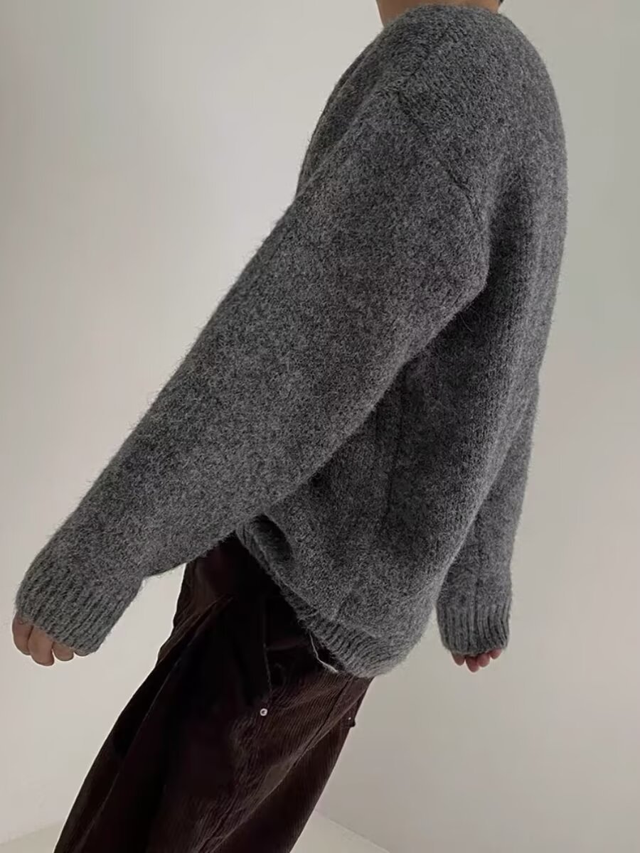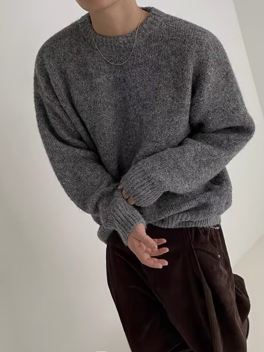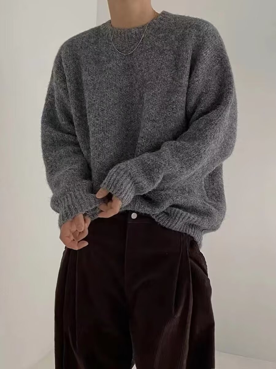가을과 겨울 새로운 한국 스타일 유행 유행 레트로 단색 부드러운 스웨터 남자의 느슨한 크루 넥 봉제 스웨터