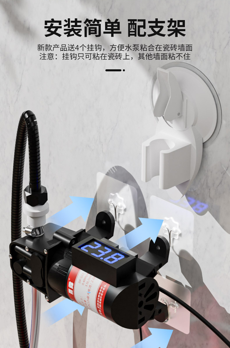 • [온도 표시] 가정용 자체 프라이밍 5단 슈퍼차저 샤워기 + 조정 불가능한 전원 공급 장치 + 후크
