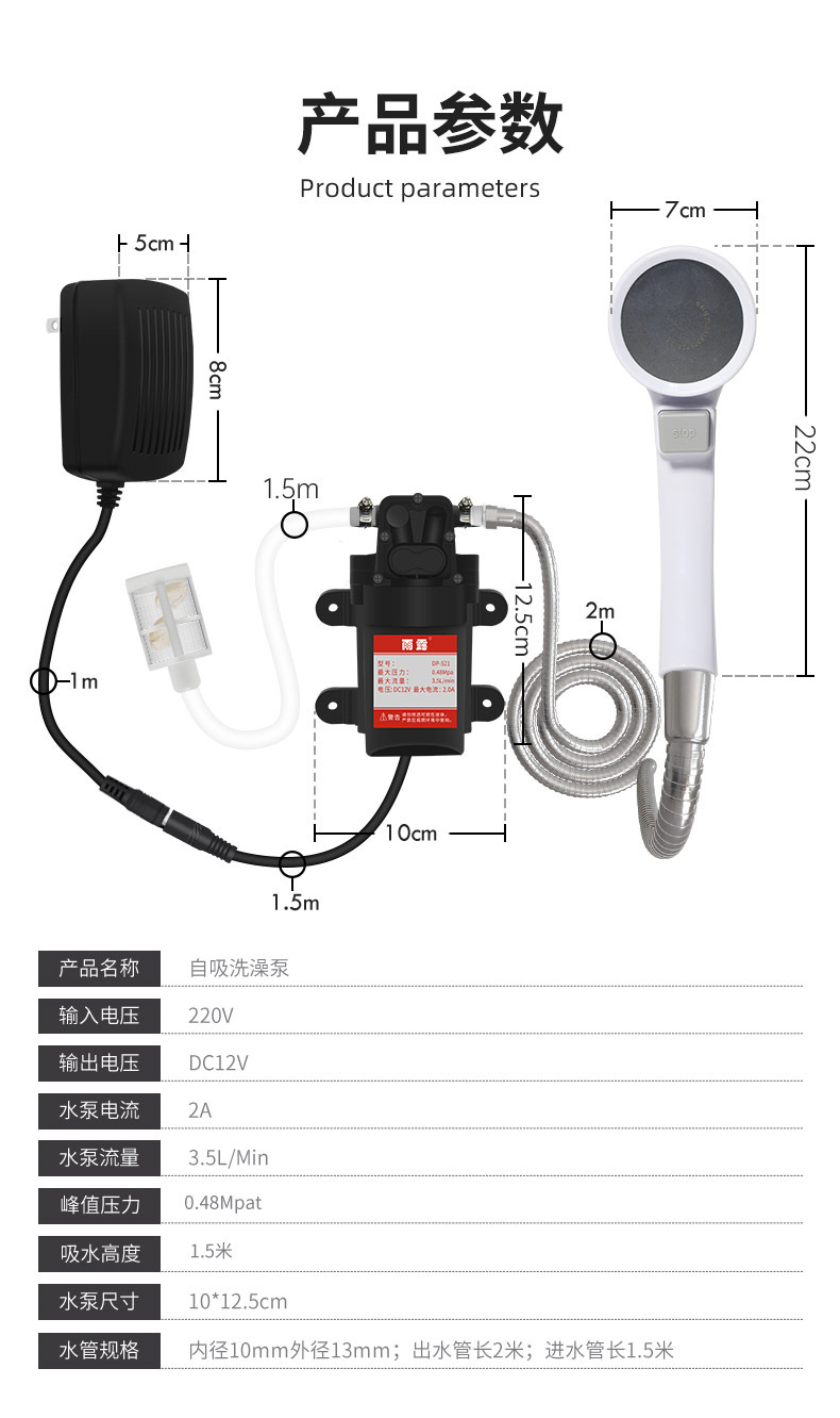 수영 아티팩트 농촌 야외 기숙사 건설 현장 학생 펌핑 샤워 펌프 저전압 DC 입욕 샤워스토어 가기