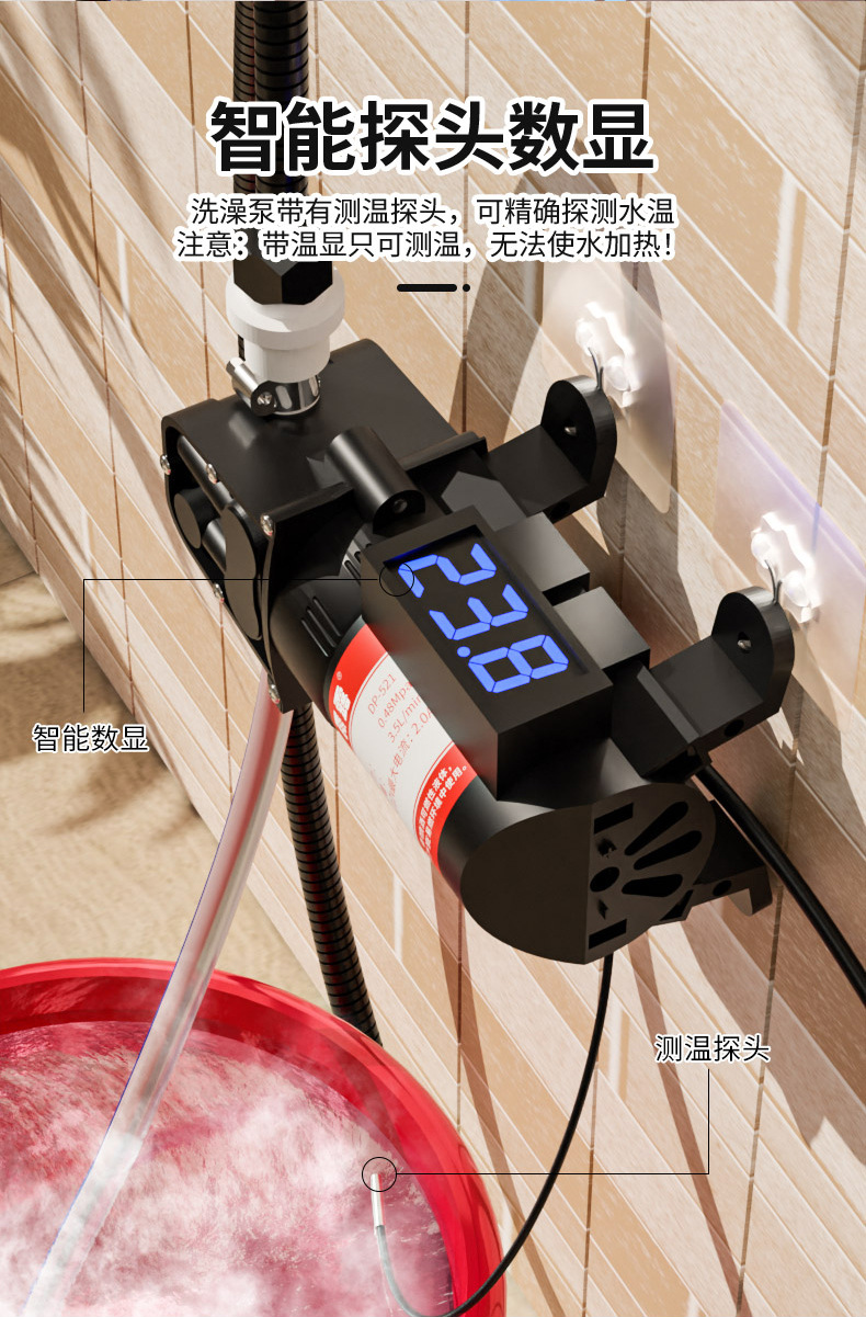 • [온도 표시] 가정용 자흡식 부스터 샤워기 + 조정 불가능한 전원 공급 장치 + 후크