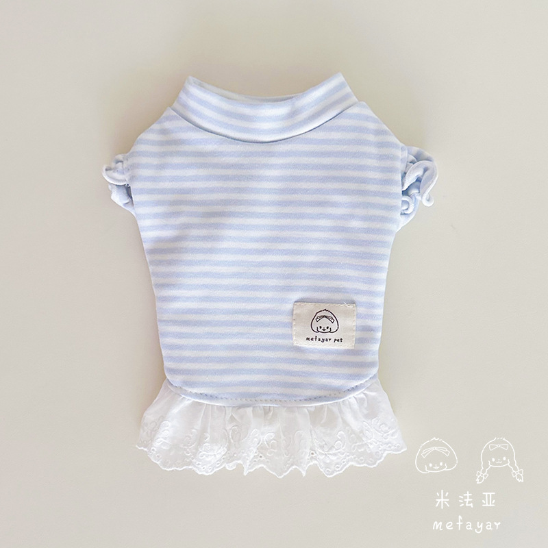 Mifaya 애완 동물 고양이와 개 옷 순수한면 푸른 줄무늬 봄과 가을 커플 슬리브 스커트 4 개 다리 가방 벨리 옷 홈베이스스토어 가기