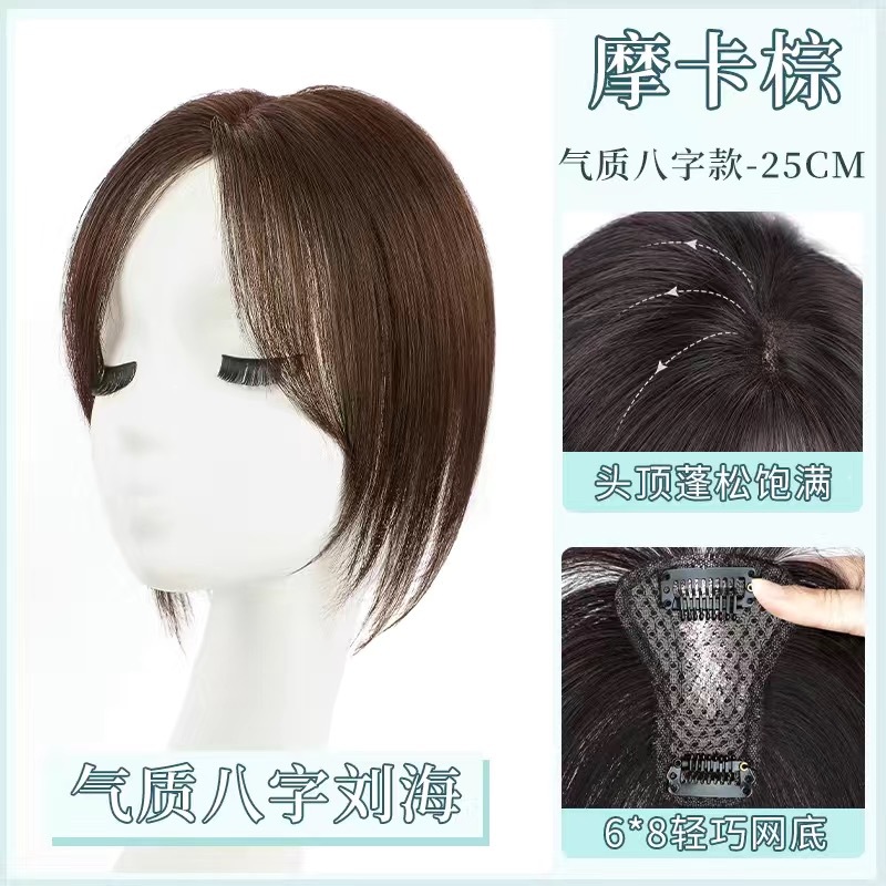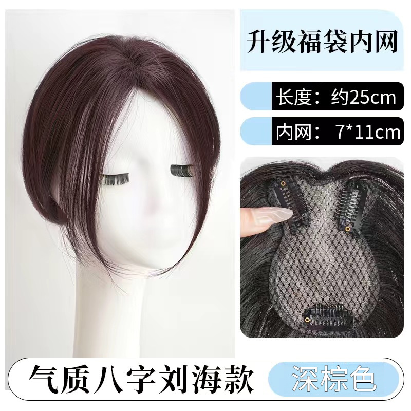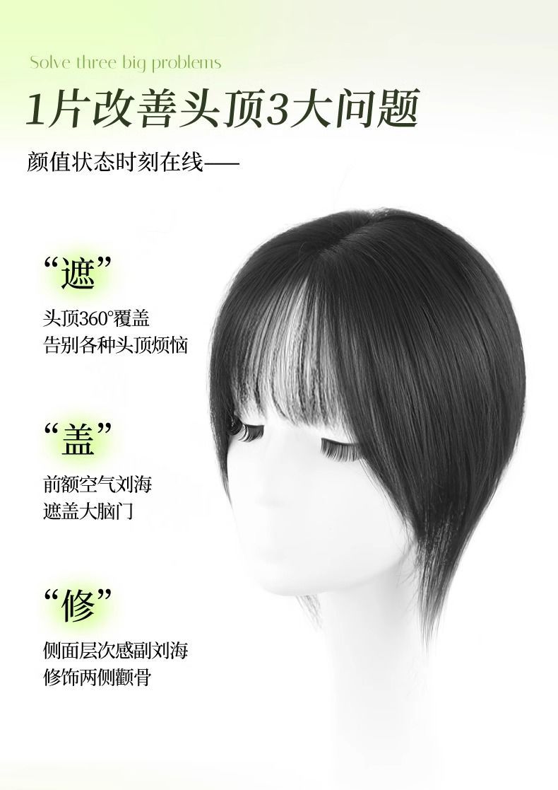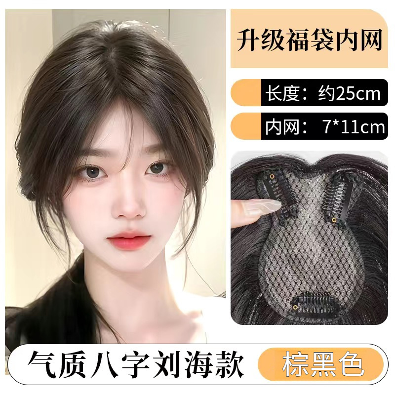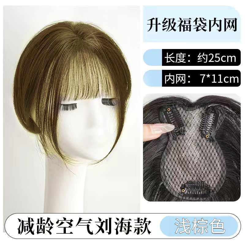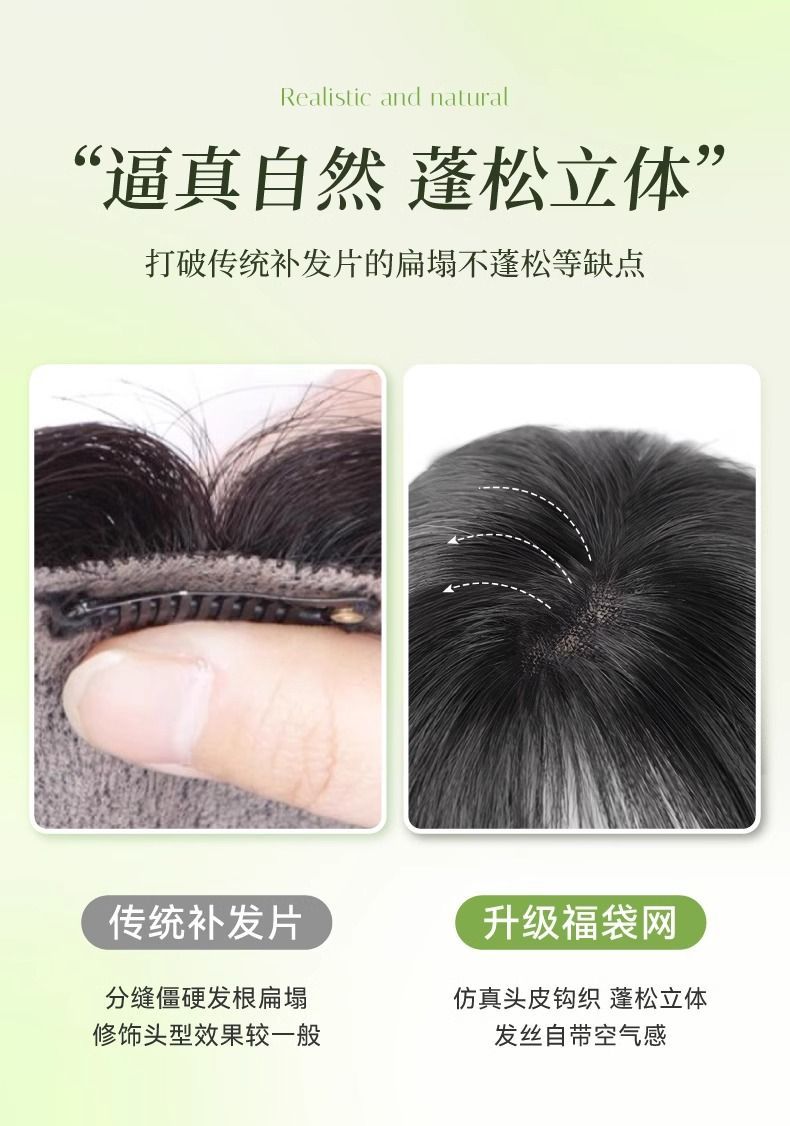 가발 여자 머리 재발행 추가 볼륨 푹신한 높은 두개골 탑 업그레이드 Fu Bag 그물 큰 영역 덮음 흰색 머리 가짜 Bangs스토어 가기